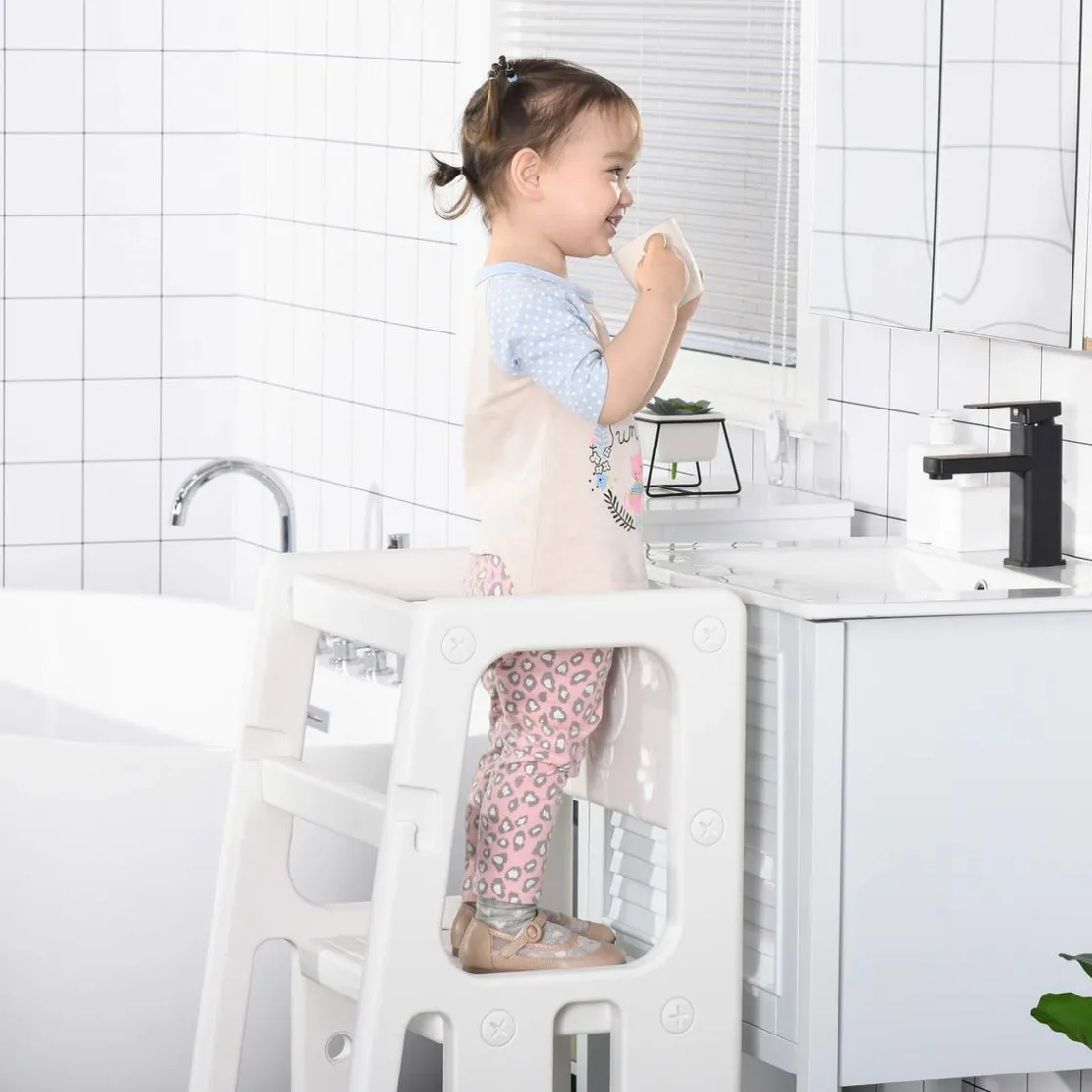 Homcom – Escalón elevador Taburete aprendizaje. Si quieres fomentar la autonomía de los pequeños de la casa a edades tempranas, este taburete de aprendizaje te será de gran ayuda.