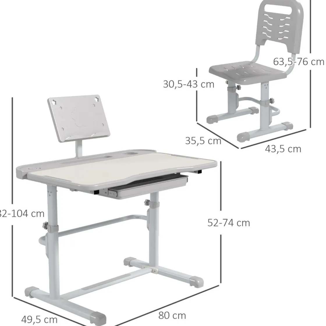 Homcom – Escritorio y silla ajustable Gris y Blanco, un conjunto que se adapta al crecimiento de los niños.
