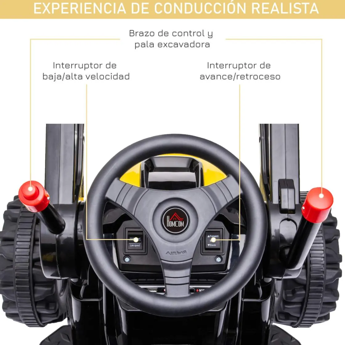 - Vehículo eléctrico infantil con apariencia realista de tractor excavadora .