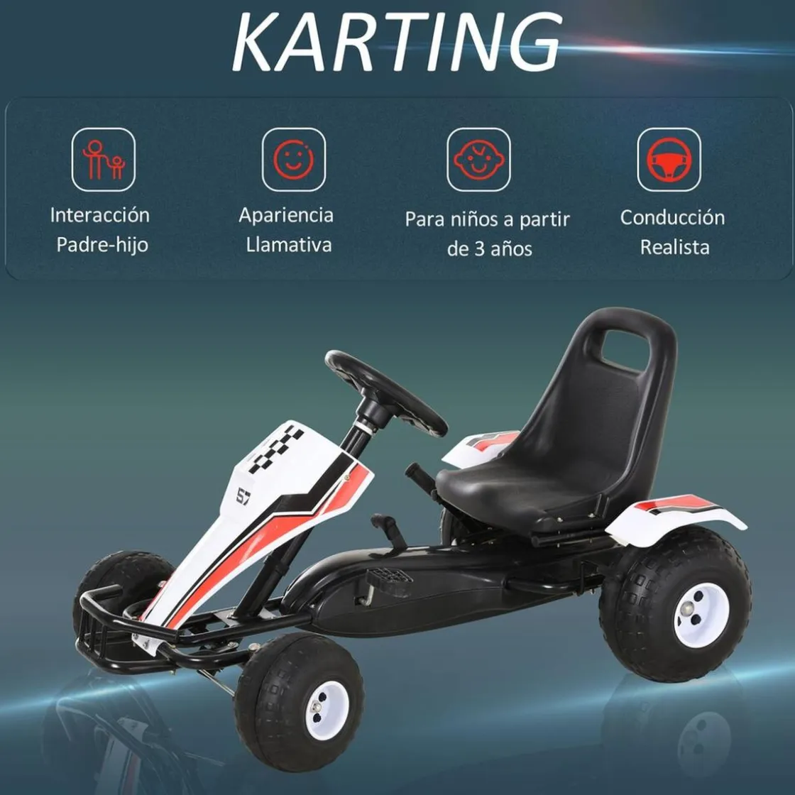 Homcom – Go Kart infantil pedales. ¿Quieres que tu hijo se aleje de los dispositivos electrónicos? ¿Quieres que tenga una infancia más divertida y educativa? Este Go-Kart con pedales es la opción ideal para mantenerlo alejado de las pantallas.