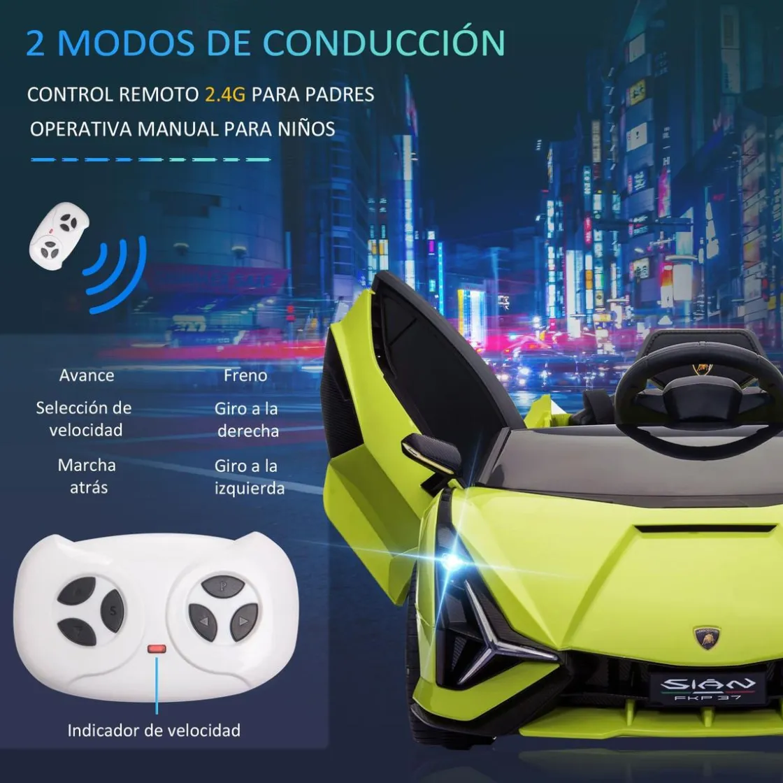 Homcom – Lamborghini SIAN eléctrico verde, un vehículo licenciado por Lamborghini que les hará vivir grandes aventuras.