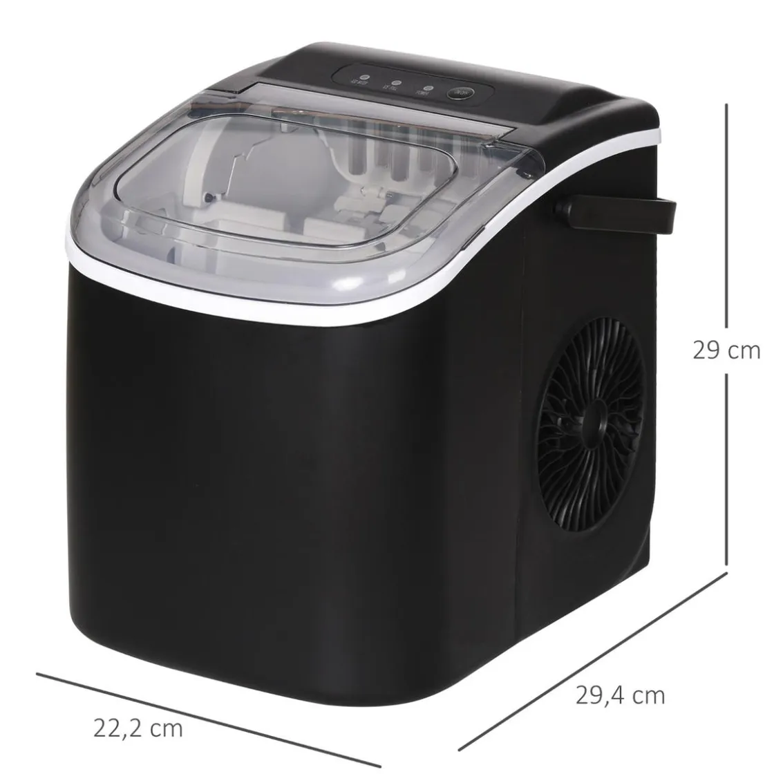 HOMCOM – Máquina Hielo Negro 105W, máquina para hacer hielo que produce 12kg de cubitos de hielo al día.