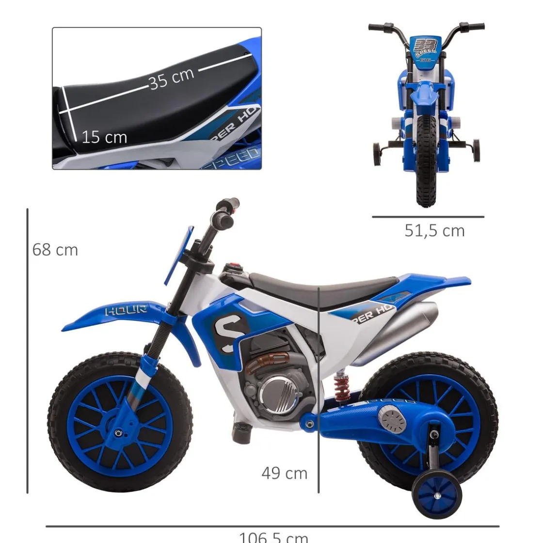 Homcom – Moto eléctrica azul-blanco, una motocicleta eléctrica que será la compañera de aventuras perfecta para cualquier niño.