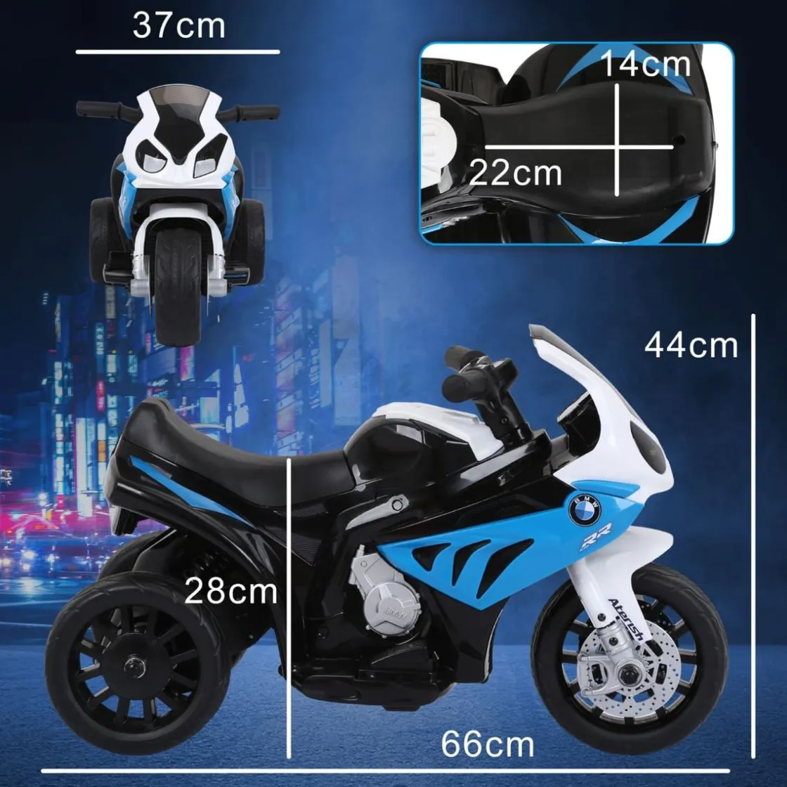 Homcom – Moto Eléctrica infantil BMW. ¡Que empiece la aventura! Esta moto eléctrica infantil es perfecta para tu hijo. Con una autonomía de hasta 45 minutos tras una carga completa, podrá ir a sus lugares favoritos como un auténtico conductor. Con faros y música, esta moto de batería ofrece una experiencia de conducción superrealista para que disfrute al máximo. Dispone de un cómodo asiento, 3 ruedas y una velocidad de 2,5 km/h, proporcionando estabilidad y seguridad.