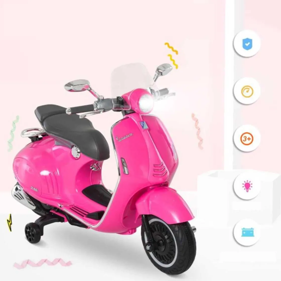 p>Homcom – Moto Eléctrica Vespa Infantil Rosa HomCom. Moto eléctrica con autorización oficial de VESPA para niños.