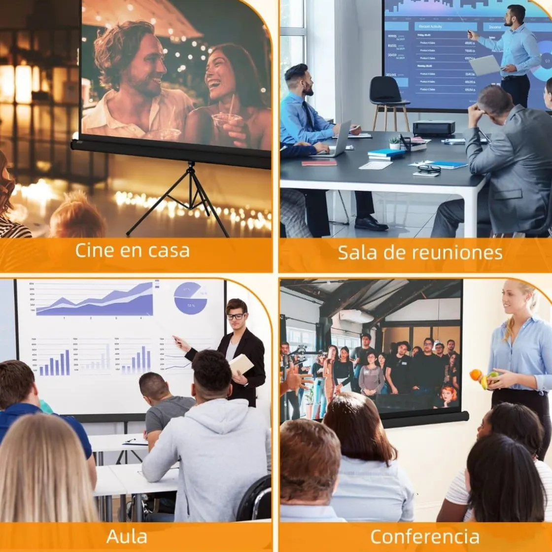 Esta pantalla de 100 pulgadas puede ser utilizada para diversos propósitos, desde noches de cine en el patio hasta presentaciones en la oficina.