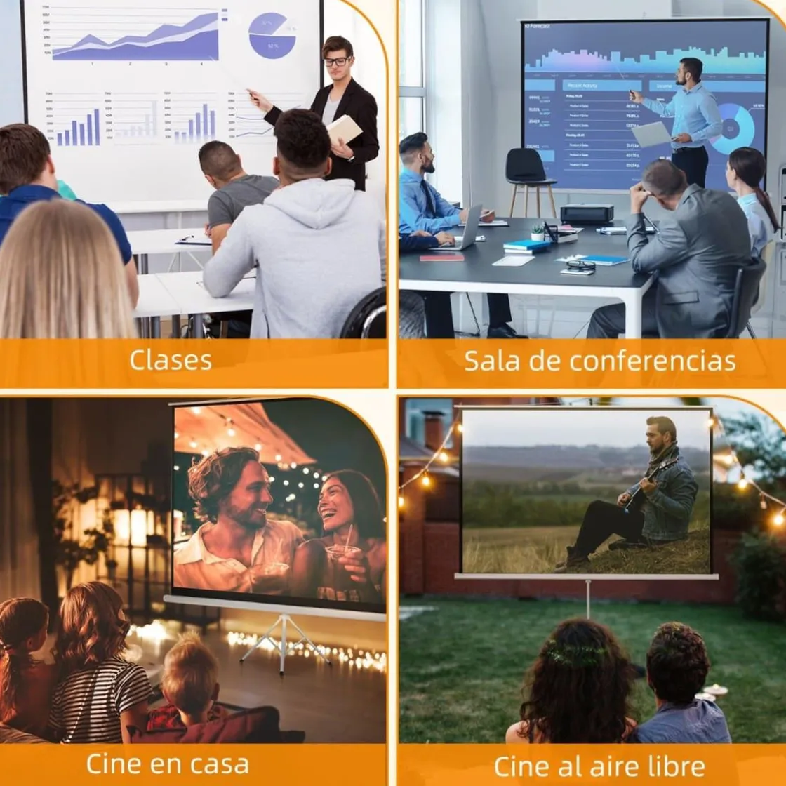 La pantalla de 120 pulgadas se puede usar para múltiples propósitos, desde noches de cine en el patio hasta una presentación en la oficina. Y lo mejor de todo, cuando no está en uso, se puede plegar y guardar fácilmente.