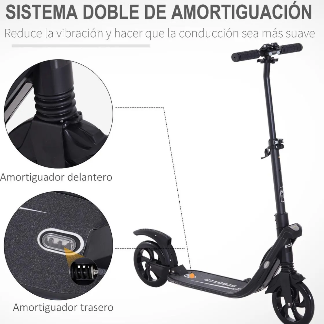 Homcom – Patinete Scooter Ajustable 2 ruedas Grande Negro. El patinete ya no es solo un juguete para niños; en los últimos años se ha convertido en el compañero perfecto para traslados cortos. Y este patinete plegable de Homcom, adecuado también para mayores de 14 años, te ofrece toda la comodidad para disfrutar en tu tiempo libre y para utilizar en los traslados cortos de tu día a día. Además, es una forma muy divertida de hacer ejercicio. ¿A qué esperas? ¡Empieza a ahorrar tiempo y dinero en transporte público con este fantástico patinete plegable!