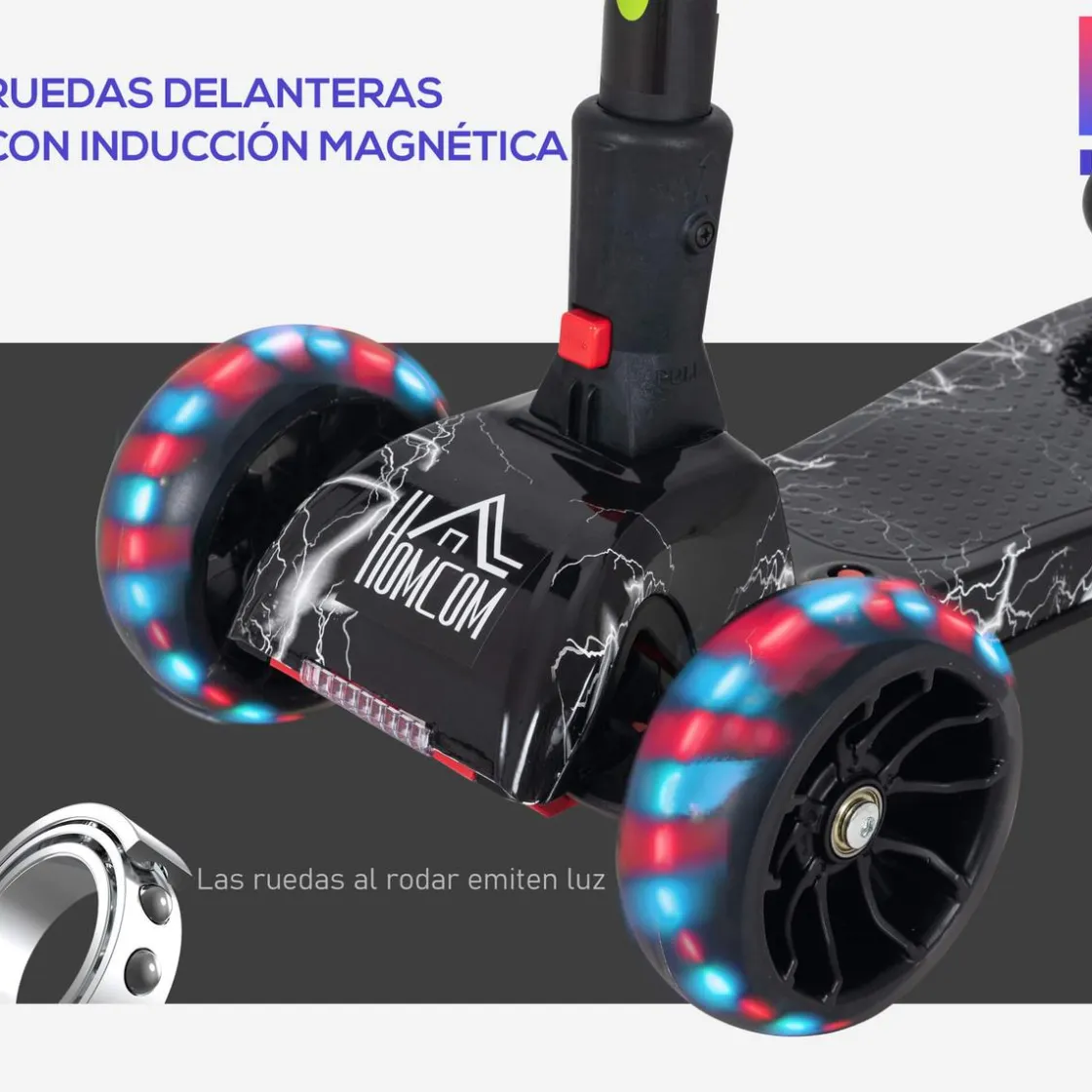 - Las ruedas delanteras tienen inducción magnética y pueden brillar al rodar.