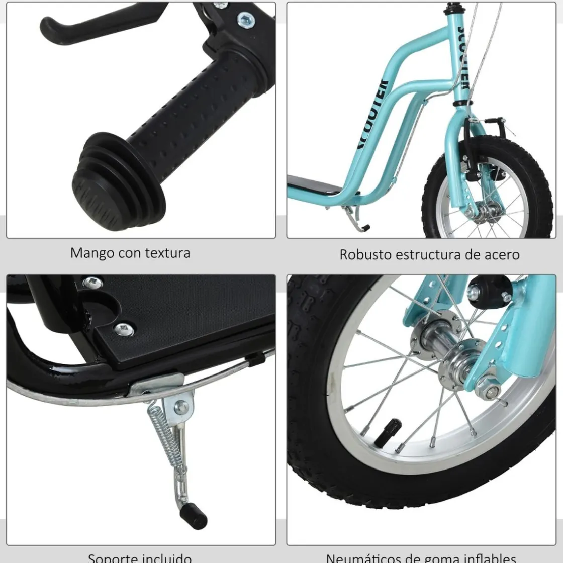 - Patinete infantil con estructura de acero resistente y robusta, equipada con un manillar ajustable