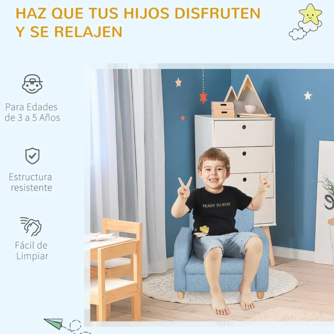 Este bonito sillón infantil de Homcom es el aliado perfecto para cualquier salón o habitación infantil. Los niños mayores de 3 años se podrán sentar en él cómodamente mientras ven la tele o leen un cuento. Gracias a sus reposabrazos y su respaldo, tendrán un apoyo confortable en el que sentarse y descansar. El asiento está acolchado y tapizado en tela de lino transpirable, y cuenta con patas de madera de caucho que ofrecen una gran estabilidad ¡A los niños les encantará!