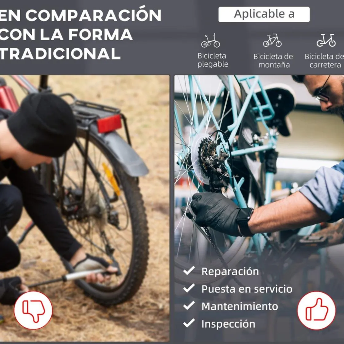 Ya sea porque eres un aficionado al ciclismo y siempre quieres tener tu bicicleta a punto o porque estás pensando en montar tu propio negocio, este soporte para reparación de bicicletas de Homcom te da oportunidad de llevarlo a la práctica. Como su abrazadera gira 360° podrás poner la bicicleta en el ángulo que te resulte más cómodo para trabajar. Sus patas en forma de trípode resultan muy estables y como extra se incluye una bandeja extraíble para herramientas que resulta de lo más práctica.