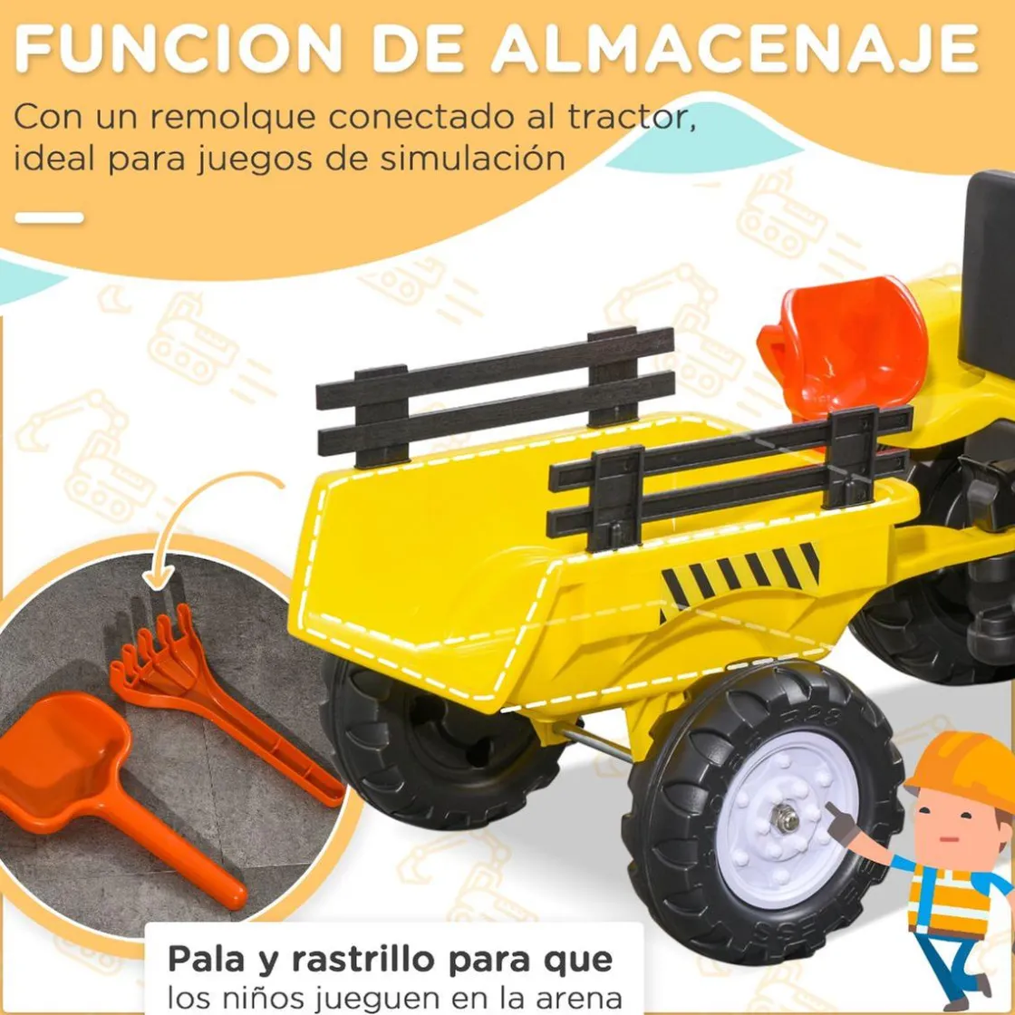 Homcom – Tractor a pedales con remolque amarillo, tractor a pedales tan completo que parece un tractor de verdad.