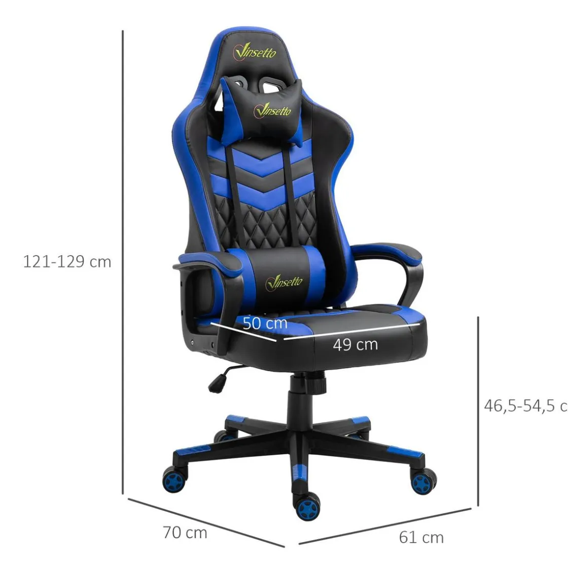 Vinsetto – Silla Gaming azul-negro, una silla ergonómica y cómoda para pasar muchas horas frente la pantalla del ordenador.