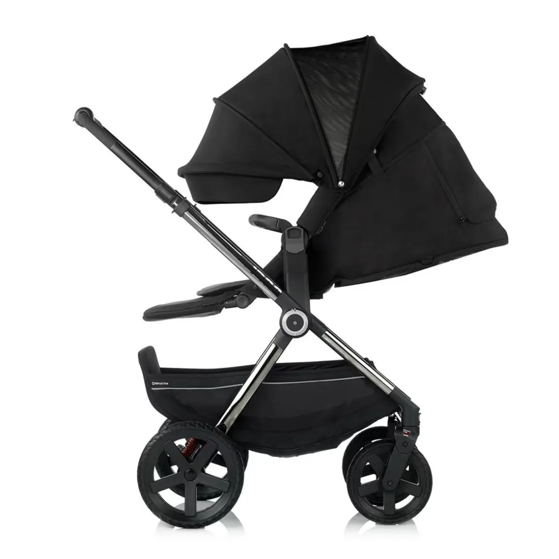 Este dúo destaca por su chasis ligero de aluminio con acabado pulido y lacado, ofreciendo resistencia y estilo. La hamaca reversible y plegable permite que el bebé viaje mirando hacia los padres o explorando el mundo, adaptándose a cada etapa de crecimiento.