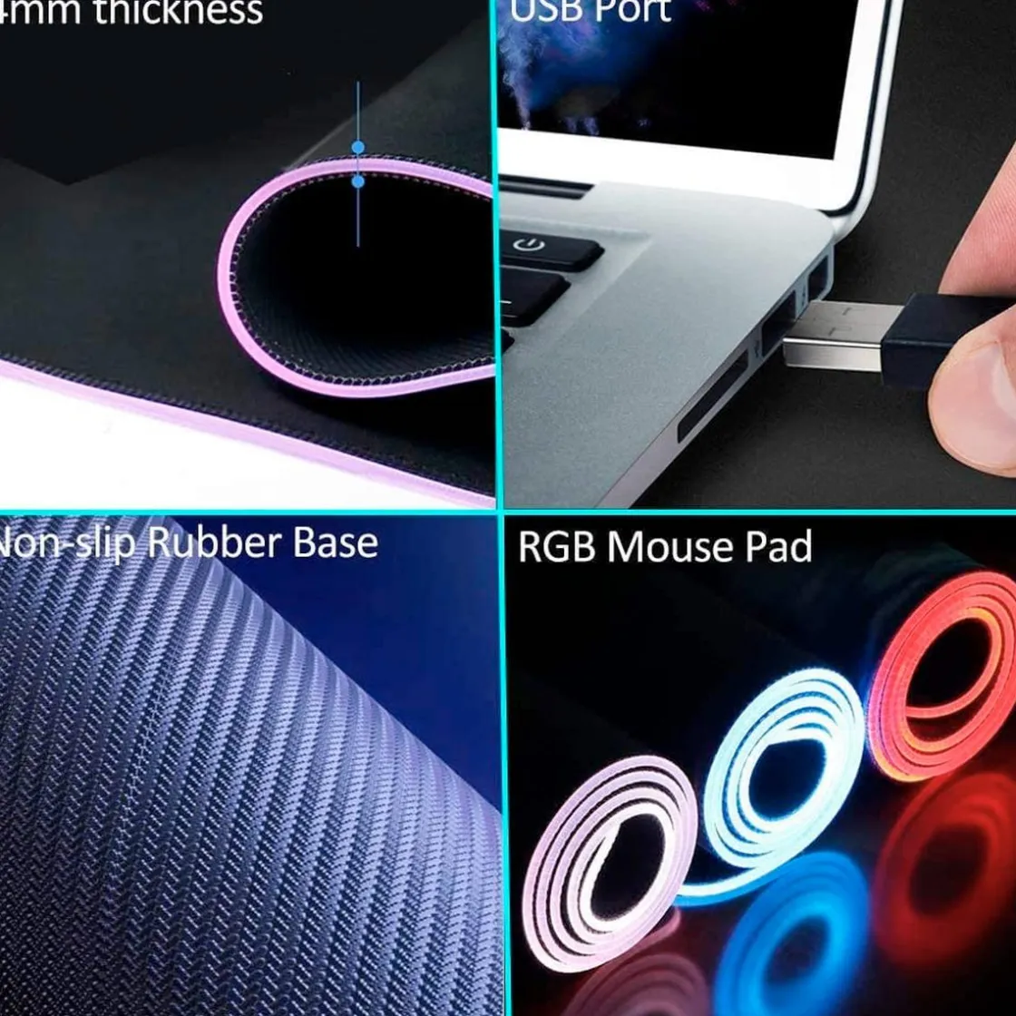 Alfombrilla ratón Gaming XXL con luces LED 80 x 30 cm. Sus medidas son 80 x 30 cm y 4 mm de grosor. Un tamaño junto a un diseño perfecto. Se adecúa perfectamente a la mesa de trabajo, proporcionando un área de movimiento excelente. Adecuada para todos los tipos de teclados y ratones, con espacio suficiente ya sea para uso profesional o para juegos.