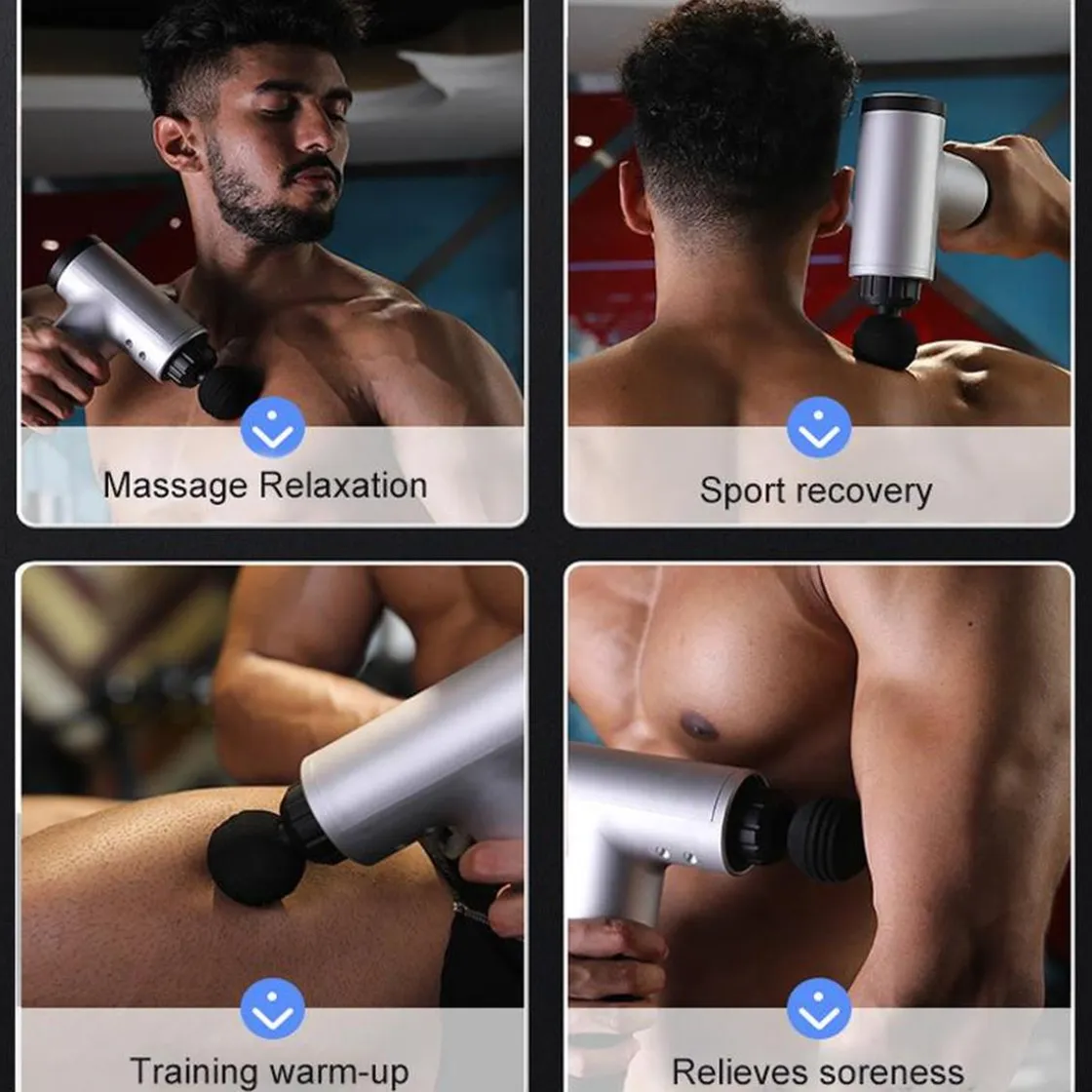 - Pistola de masaje. Nuestra pistola de masaje te ayuda a relajar los músculos tensos después de hacer deporte. Con una velocidad de 1200-3300 rpm, acelera la circulación sanguínea.