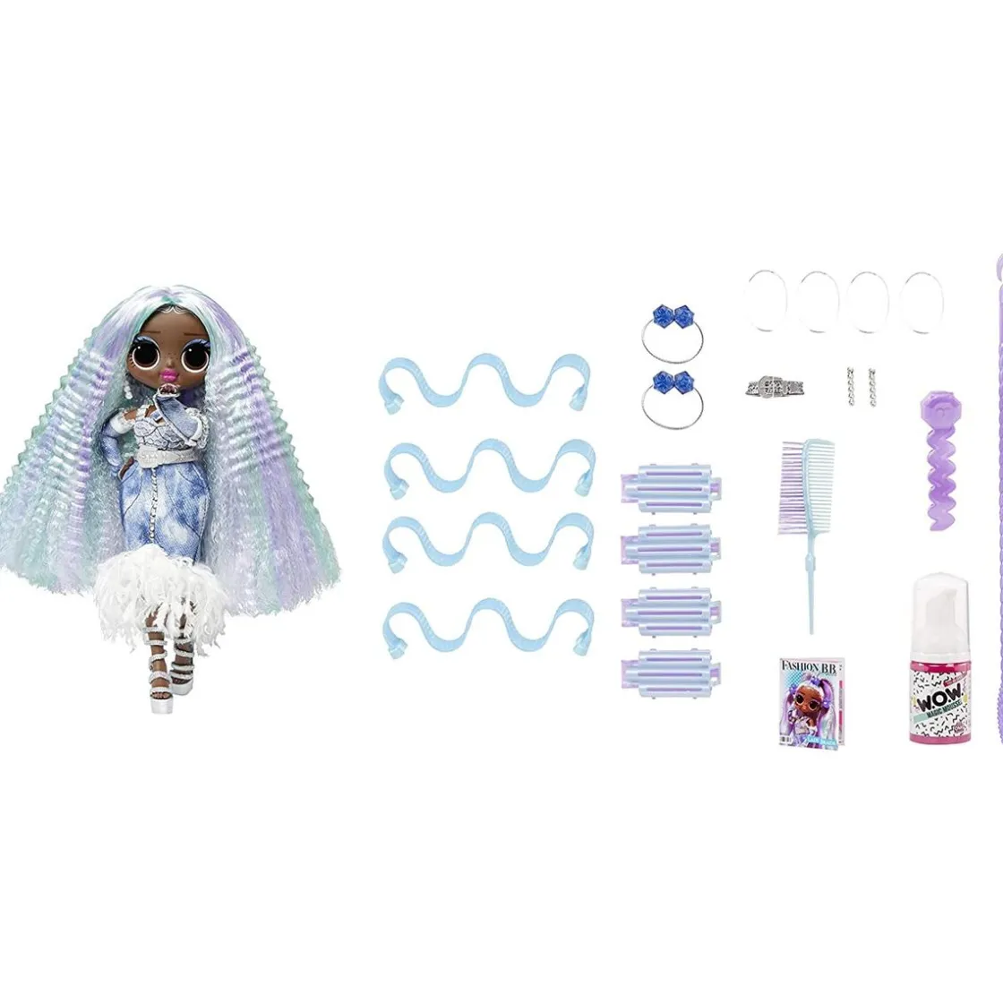 Lady Braids tiene características deslumbrantes, un cabello perfecto para peinar y está articulada para muchas poses. ¡Cada muñeca OMG Fashion Show Hair Edition viene con Magic Mousse que transforma el peinado, herramientas para peinar el cabello para engarzar, rizar, ondular o alisar fácilmente, modas feroces y accesorios detallados!