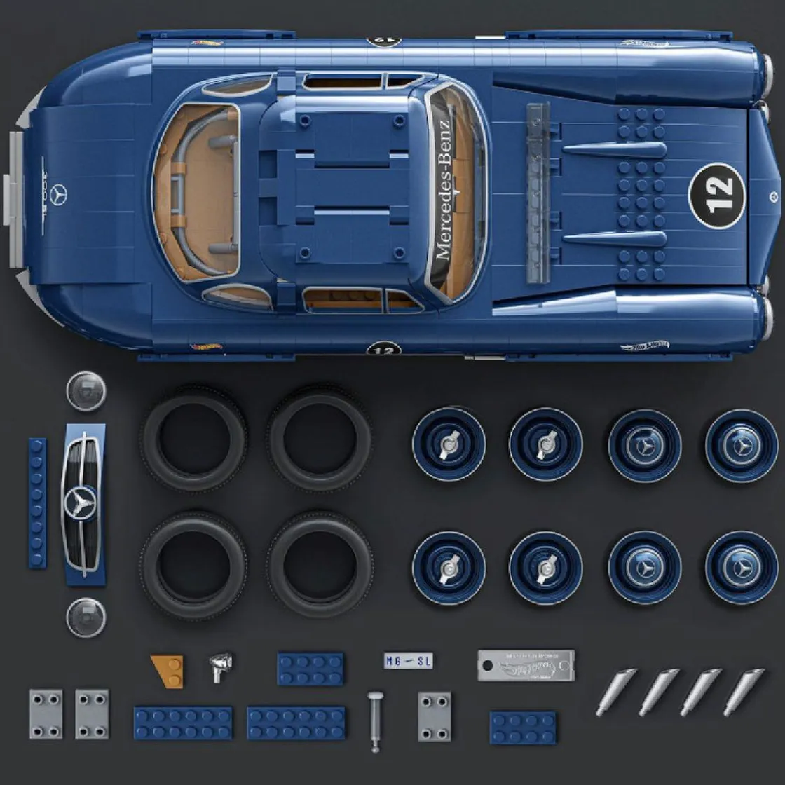 Revive la elegancia y la ingeniería legendaria de Mercedes-Benz con este impresionante set de Hot Wheels Premium. Construye desde cero el icónico Mercedes 300 SL “Alas de Gaviota”, una joya del automovilismo que marcó una era, ahora recreada con todo lujo de detalles gracias a los bloques de construcción de Mattel Brick Shop.