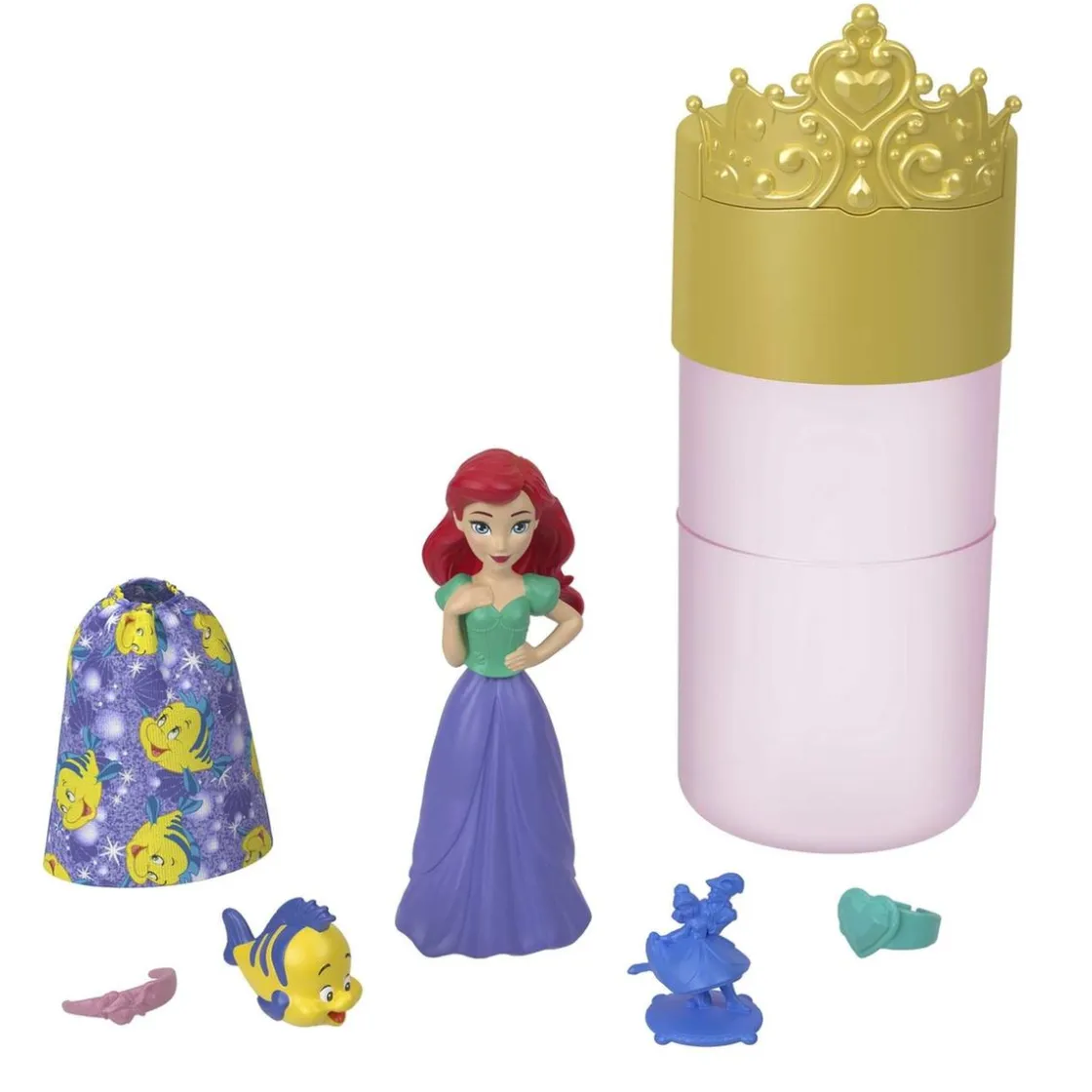 Imagina que eres parte de un cuento de Disney, mientras revelas tu princesa pegando la muñeca en agua. Podría ser Ariel, Cenicienta, Tiana, Bella, Jasmine o incluso Rapunzel. Pero la sorpresa no se detiene aquí, tres bolsas te esperan con más sorpresas ocultas incluyendo una suave y adorable falda con un estampado de amistad, una figura de amigo y tres accesorios encantadores, incluido un anillo. ¡Colecciona a todas las princesas y vive el maravilloso universo de Disney!