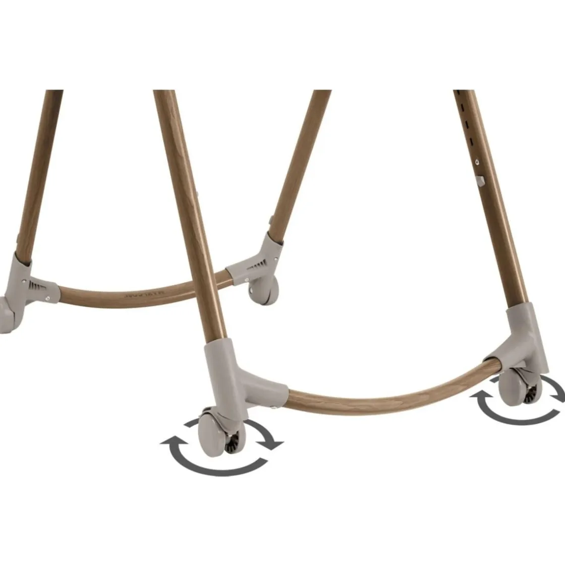 Esta trona se desplaza fácilmente gracias a sus ruedas delanteras con freno, lo que permite moverla del comedor al salón sin esfuerzo. Además, el bandeja giratoria con una mano facilita el acceso del niño al asiento y su limpieza, que es rápida y sin complicaciones, ya que la bandeja es apta para lavavajillas.