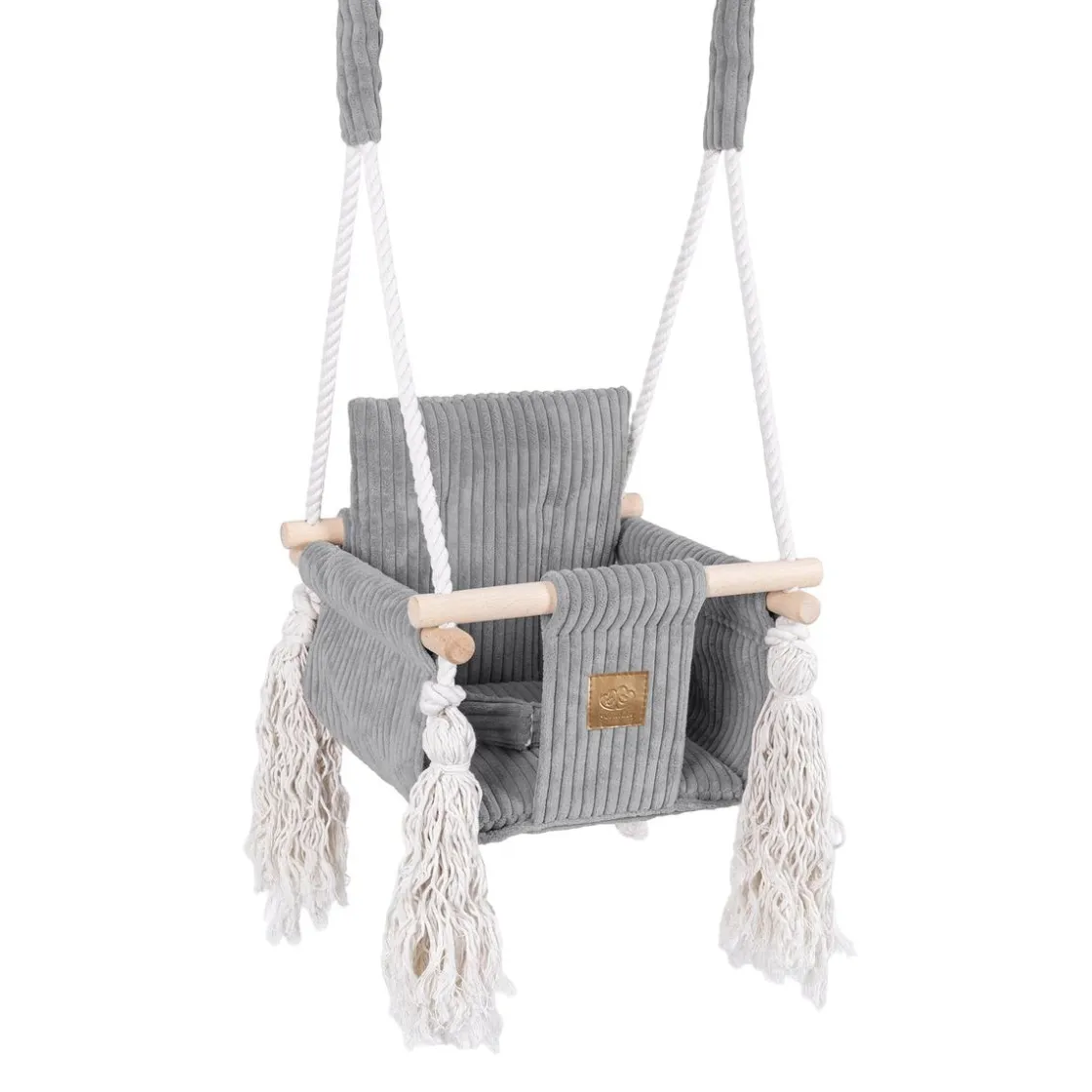 El Indoor Baby Swing – Square Swing Grey combina seguridad, comodidad y estilo contemporáneo. Fabricado en poliéster 100 %, ofrece un asiento acolchado cuadrado con estructura firme, ideal para bebés de hasta 12 kg.