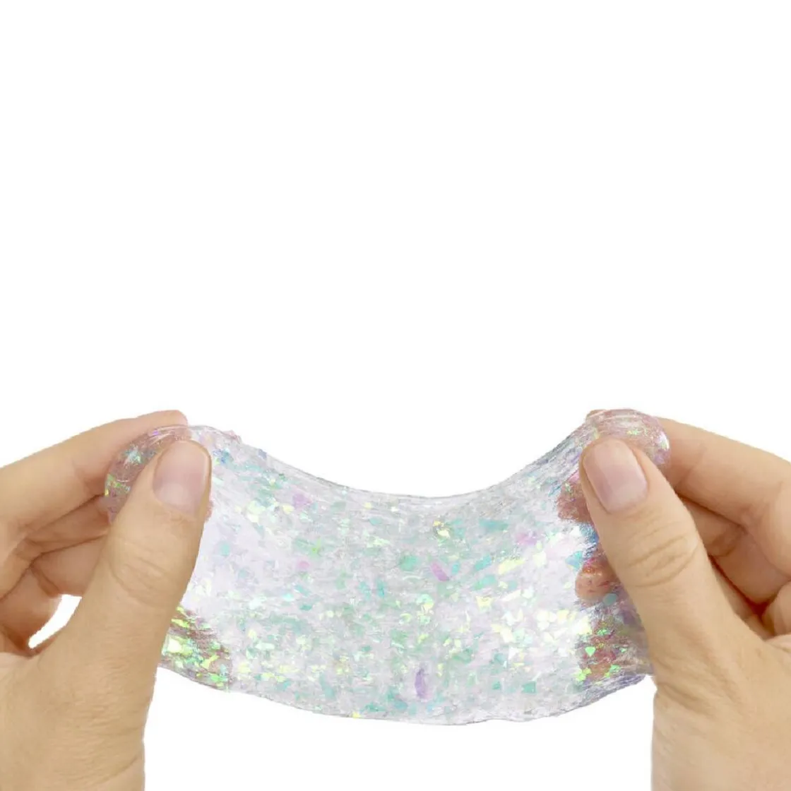 En el interior encontrarás slime con efecto shimmer en distintas tonalidades, con destellos perlados y purpurina que reflejan el espíritu elegante y moderno de Skyler. Podrás estirar, mezclar y combinar los colores para crear nuevas texturas y brillos únicos.