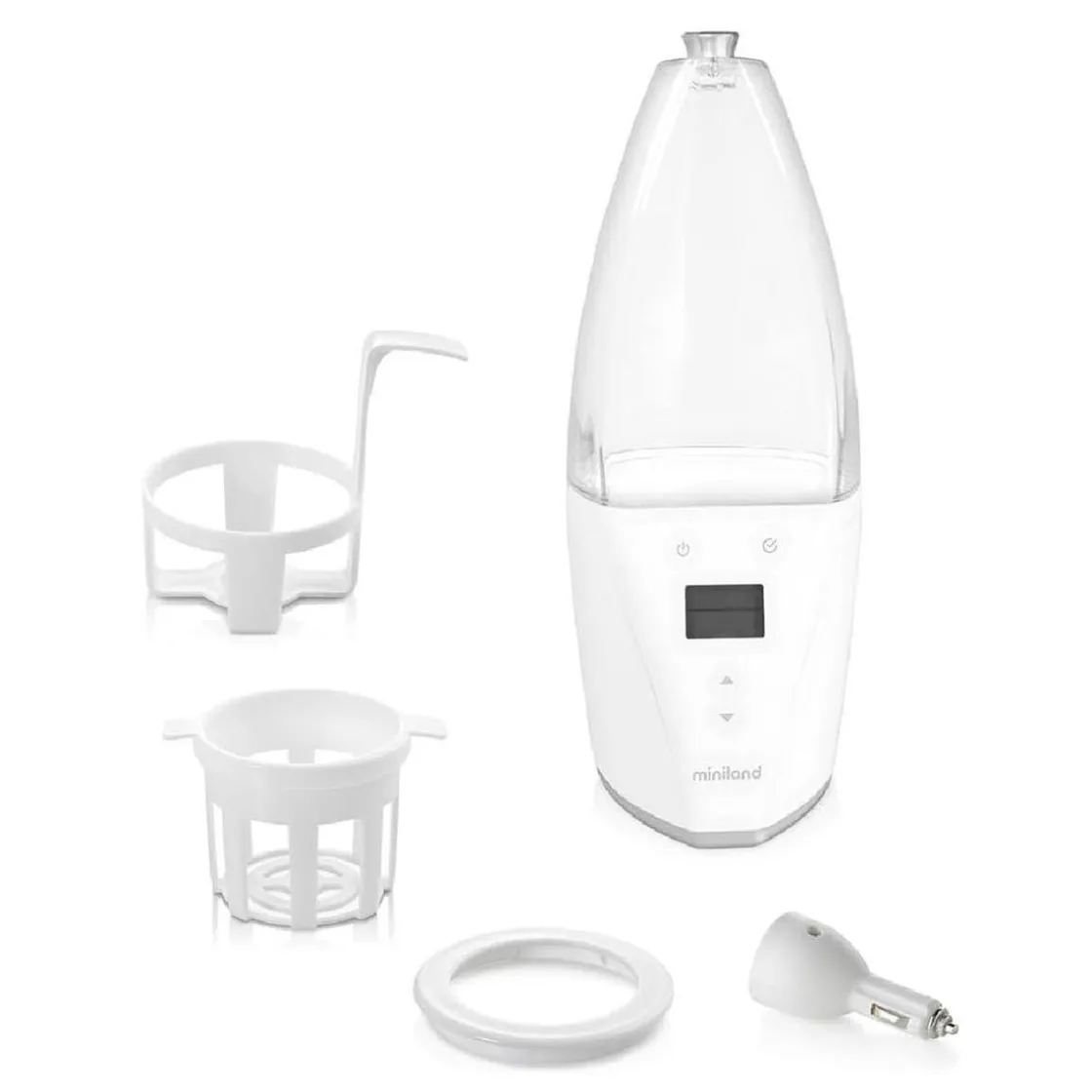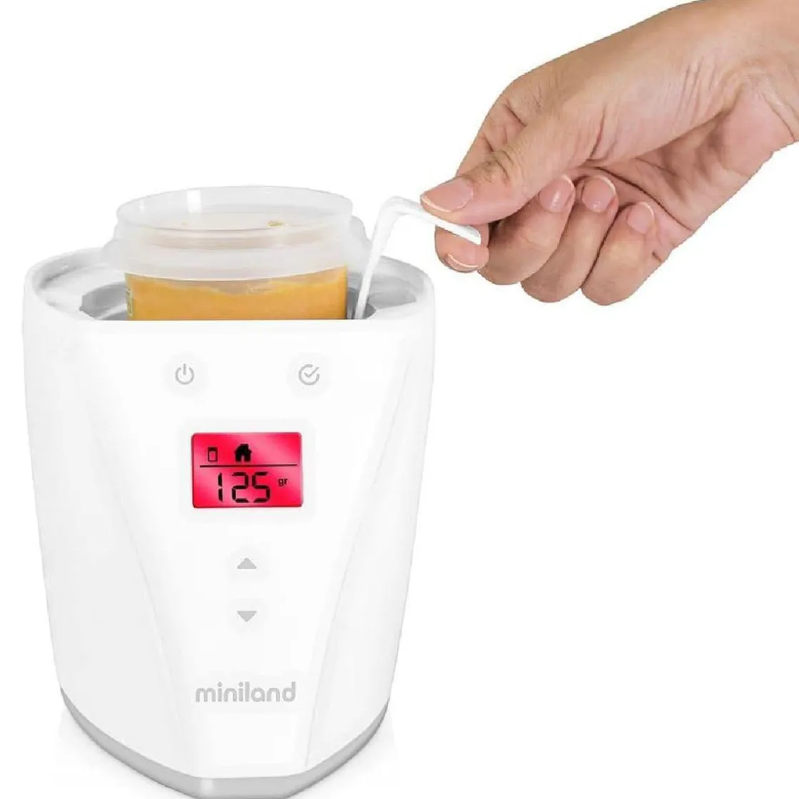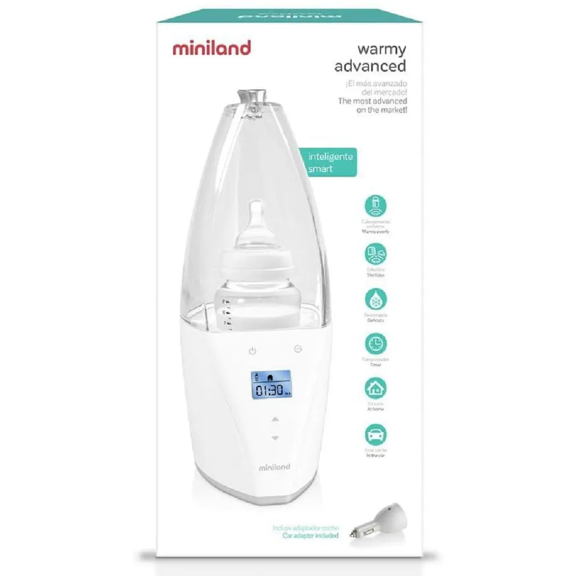Miniland – Calientabiberones y Esterilizador Warmy, un calientabiberones y esterilizador digital con funciones avanzadas que calcula automáticamente el tiempo de funcionamiento necesario para el tipo de comida, tamaño y temperatura inicial.