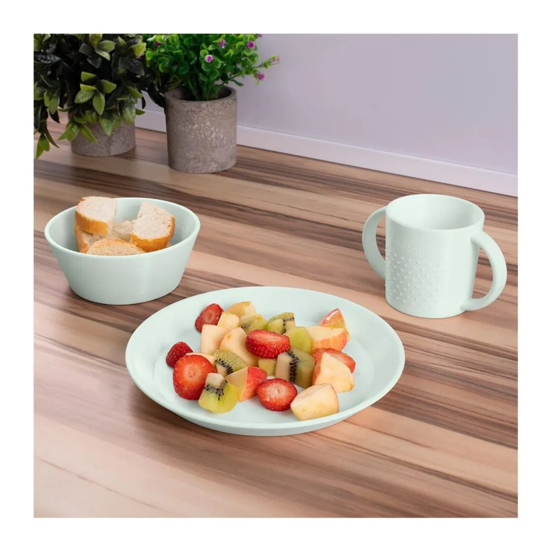 Miniland – Vajilla infantil Round menta, la vajilla ideal para acompañar a tu bebé en sus primeras etapas de alimentación, combinando funcionalidad, seguridad y un diseño atractivo en color menta.