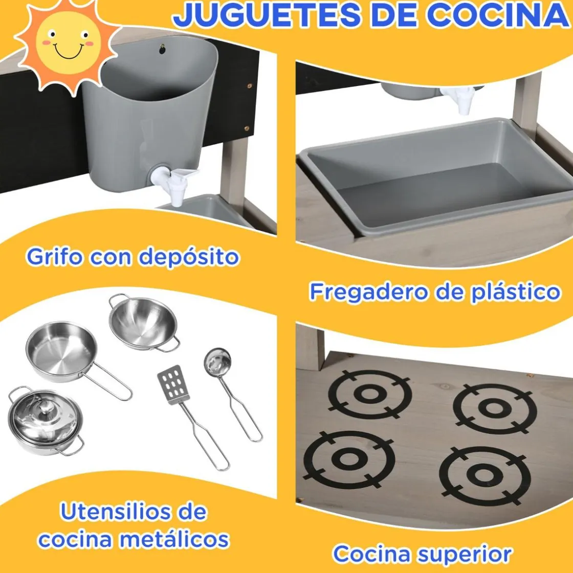 - Se incluyen accesorios de juguete de cocina para que puedan jugar a cocinar, hacer potajes con la arena y más.