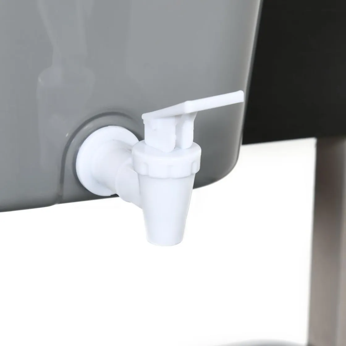 - Con un depósito para agua con grifo y una bandeja a modo de fregadero que permiten reciclar el agua y que los niños puedan limpiarse las manos.