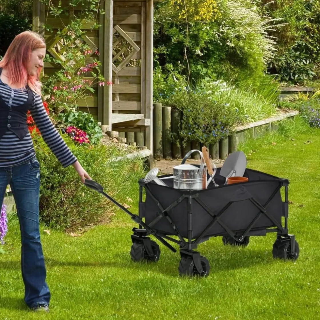 ¡Este carro de transporte Outsunny reducirá tus cargas de manera efectiva! Cuando vas de camping, vas a la playa o de pesca, ya no necesitarás llevar un bolso grande para llevar tus cosas, este carrito plegable será suficiente. También podrá ayudarte con tareas domésticas como ir a la compra o trabajos de bricolaje y jardinería. Es fácil de instalar y plegar, lo que facilita su almacenamiento y transporte. ¡Un excelente ayudante para mejorar tu calidad de vida!