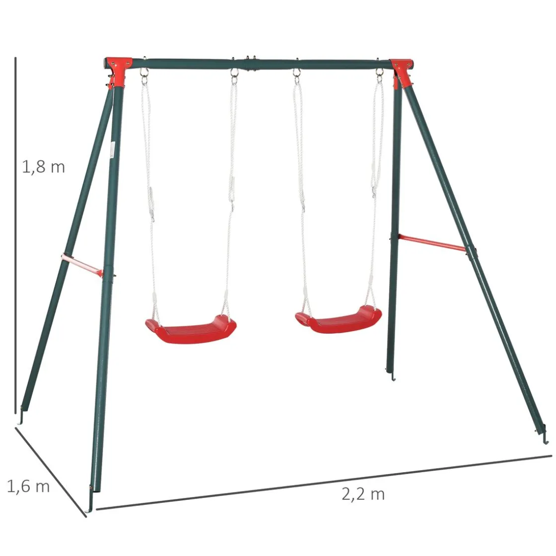 Outsunny – Columpio metálico doble. No hay nada mejor que disfrutar al aire libre con tus hijos. Fomenta su desarrollo mientras se divierten con este columpio infantil doble de Outsunny. Con una estructura resistente de metal lacado con pintura con revestimiento en polvo y con una parte que se entierra en el suelo para garantizar mayor estabilidad y resistencia con el movimiento de balanceo de los dos columpios. Para que los niños se diviertan jugando en el jardín, terraza, o cualquier espacio exterior.