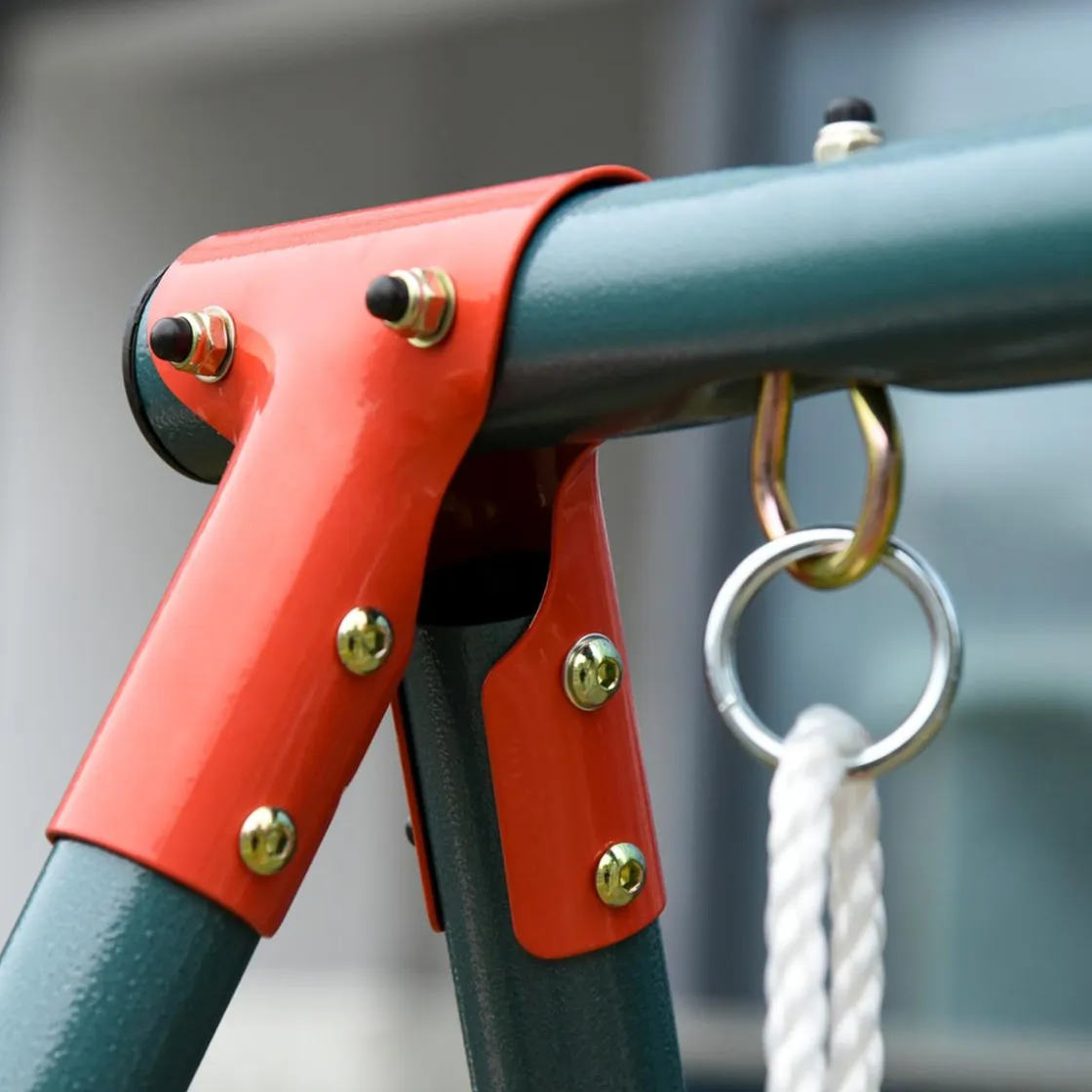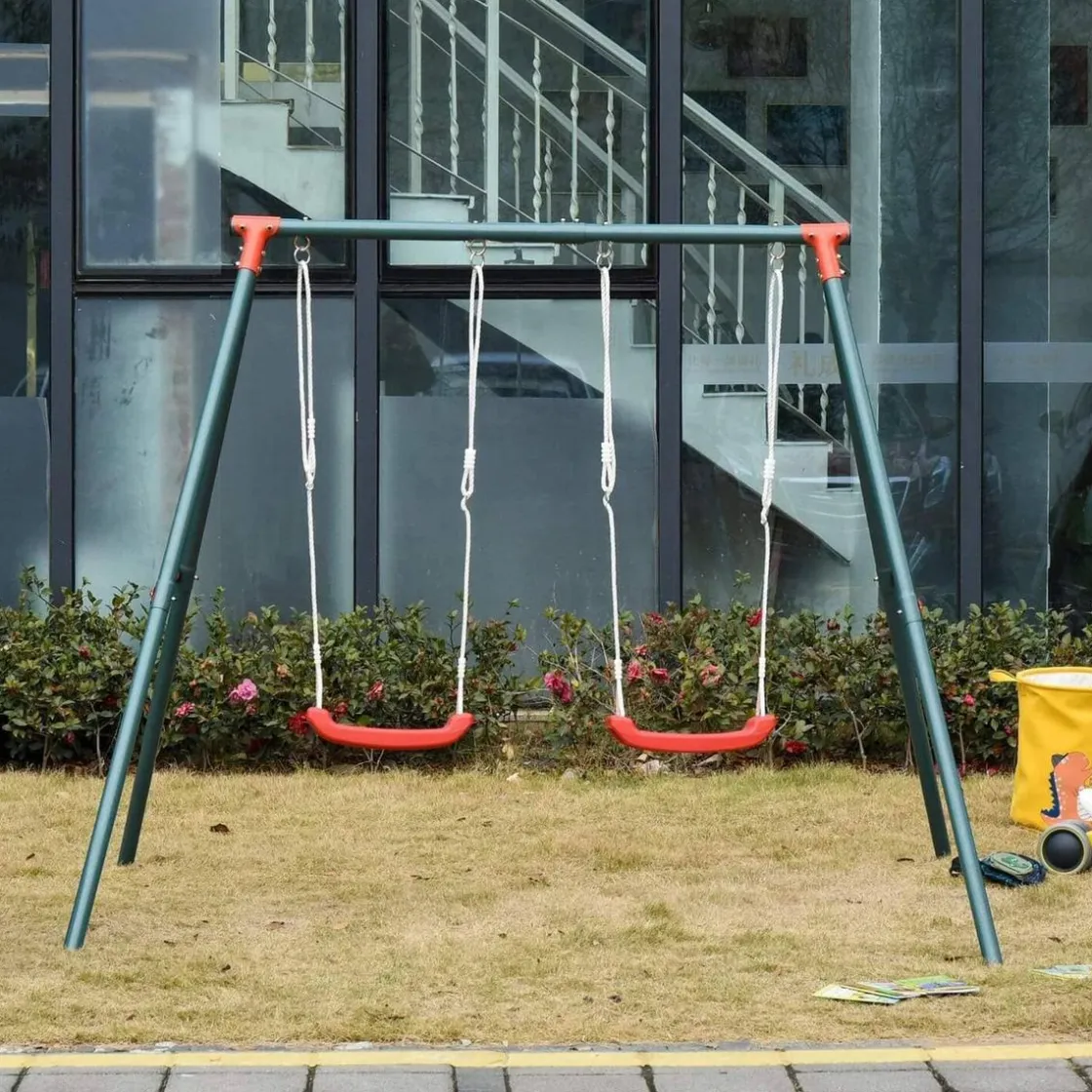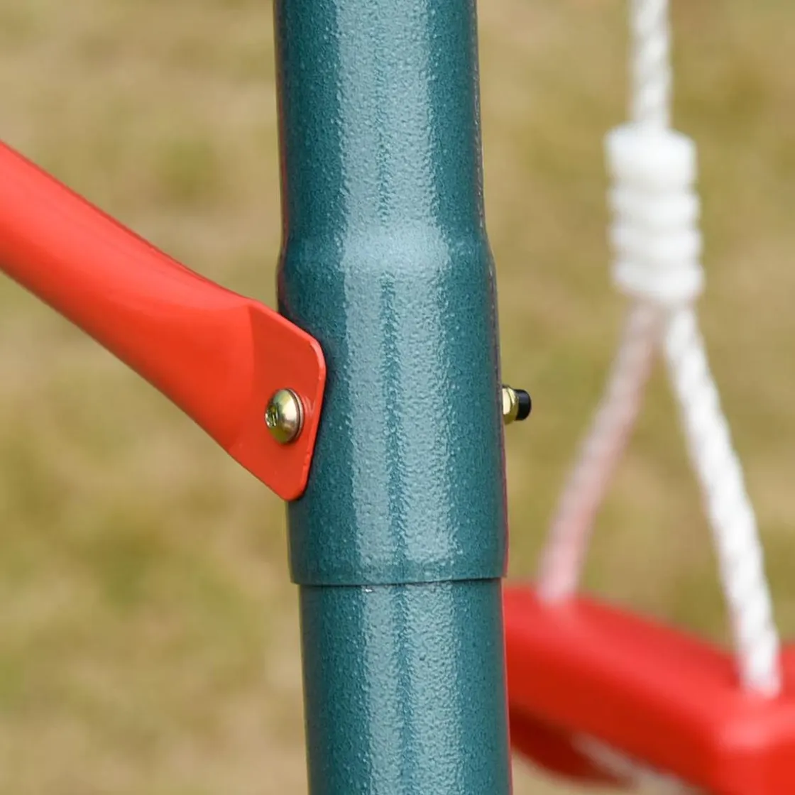 Tiene una estructura metálica lacada en pintura con recubrimiento en polvo. Este columpio con marco en forma de A ofrece gran estabilidad y resistencia a la intemperie y a la corrosión. Incluye 4 extensiones en las patas que funcionan a modo de piquetas para enterrar en el suelo. ¡Se puede montar en unos pocos minutos! Incluye todas las piezas necesarias para su correcta instalación, proporcionando un montaje fácil y rápido. Ideal para cualquier espacio al aire libre, como el jardín, el patio, el parque, etc.