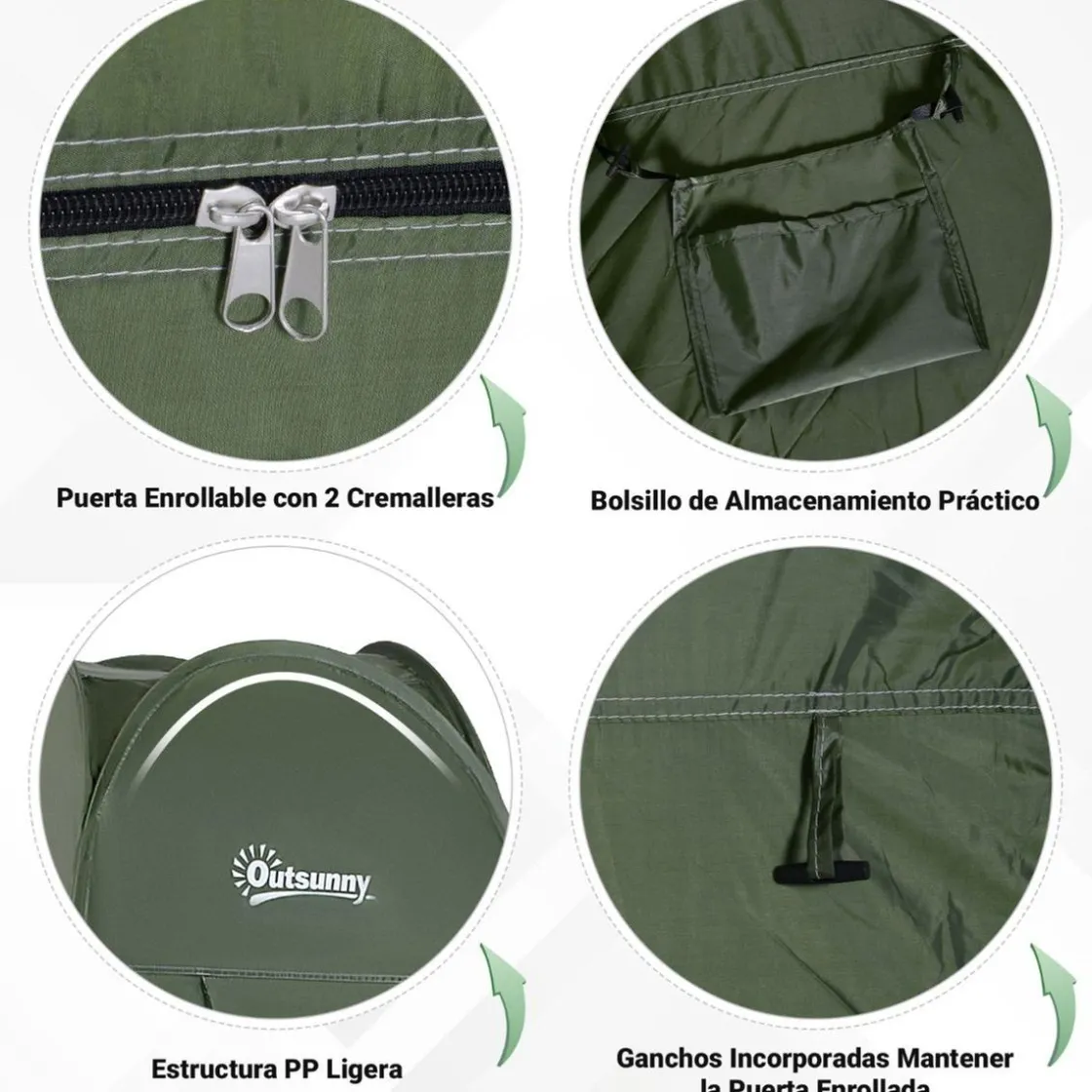 Outsunny – Tienda camping Pop Up Verde, una tienda ideal para usar como tienda de ducha, como cuarto de baño o como cambiador. Resistente al agua y protección UV para garantizar una buena resistencia a la intemperie.