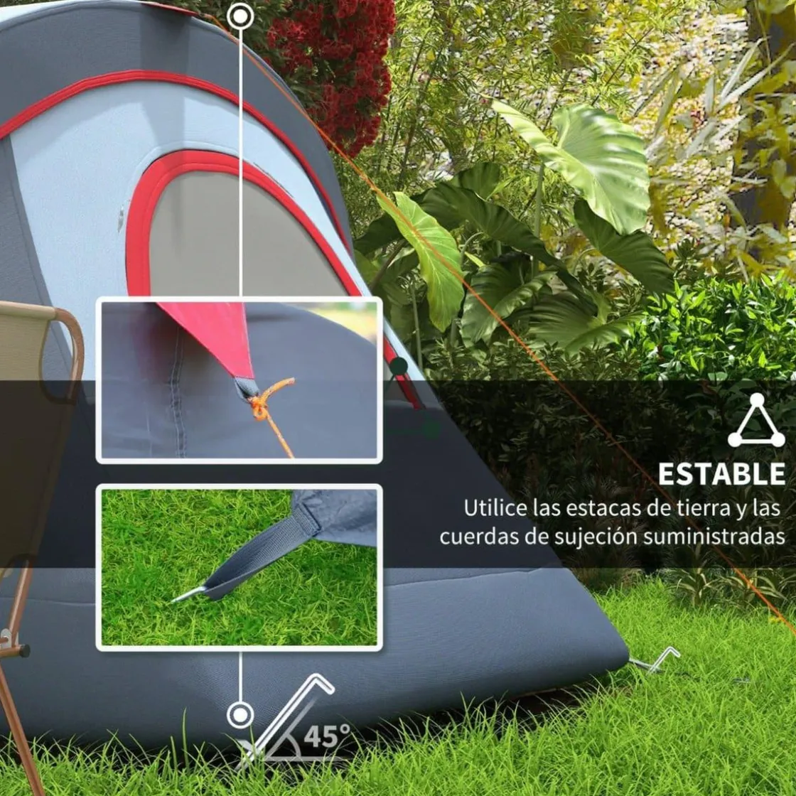 - Piquetas y cuerdas incluidas, para anclar la tienda al suelo siempre que se quiera.