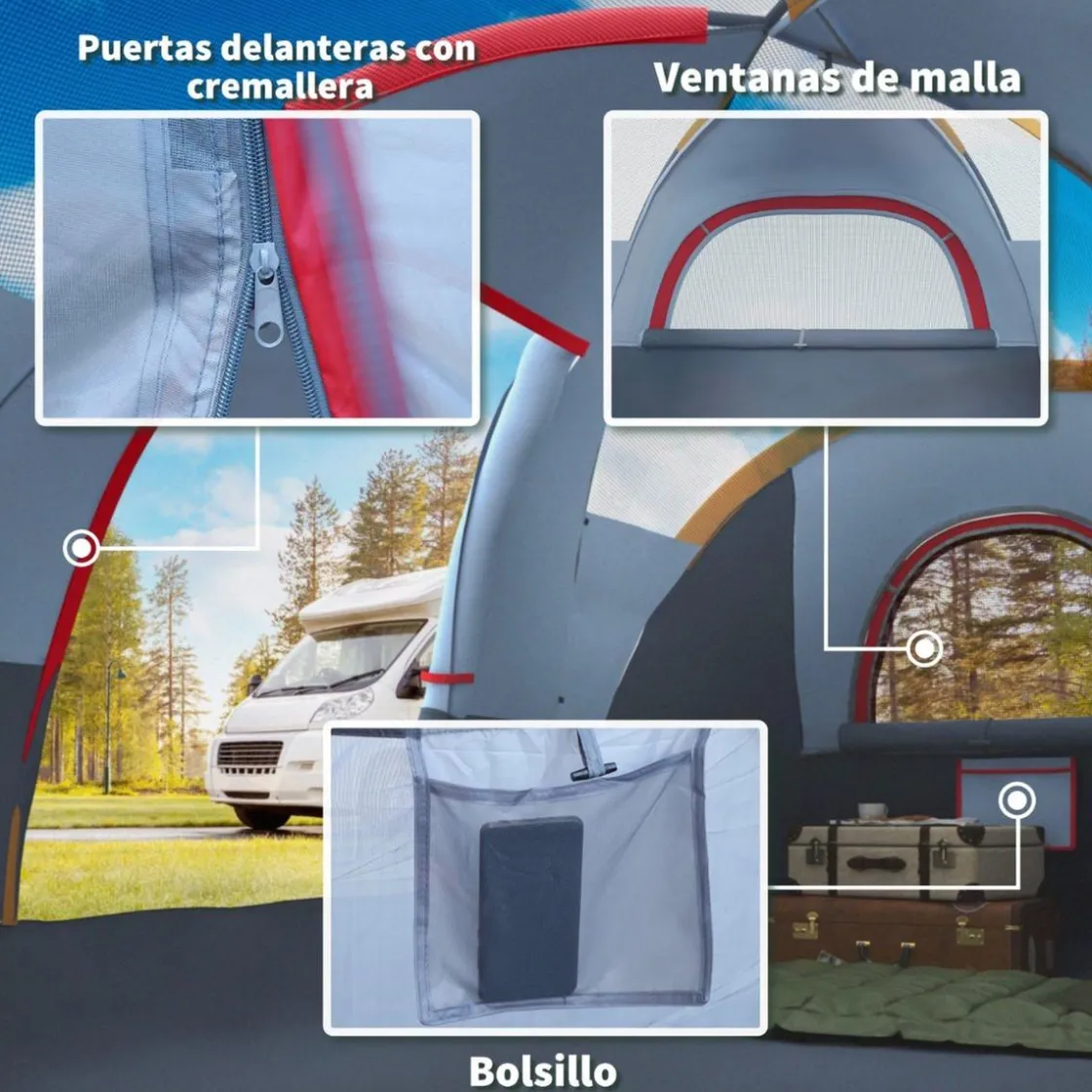 - Tienda de campaña familiar perfecta para disfrutar de la naturaleza.