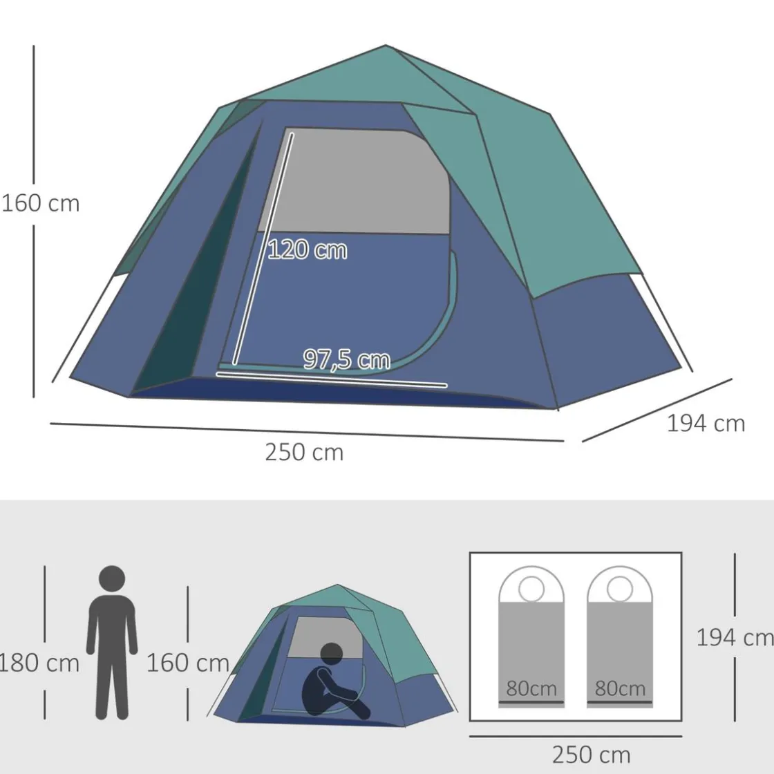 Outsunny – Tienda de campaña Pop Up 250x194x160 cm Verde, ligera y fácil de instalar sin esfuerzo, esta tienda de campaña para acampar es ideal para principiantes en acampar o para aquellos que viajan solos o con 1 acompañante o 2 como máximo.