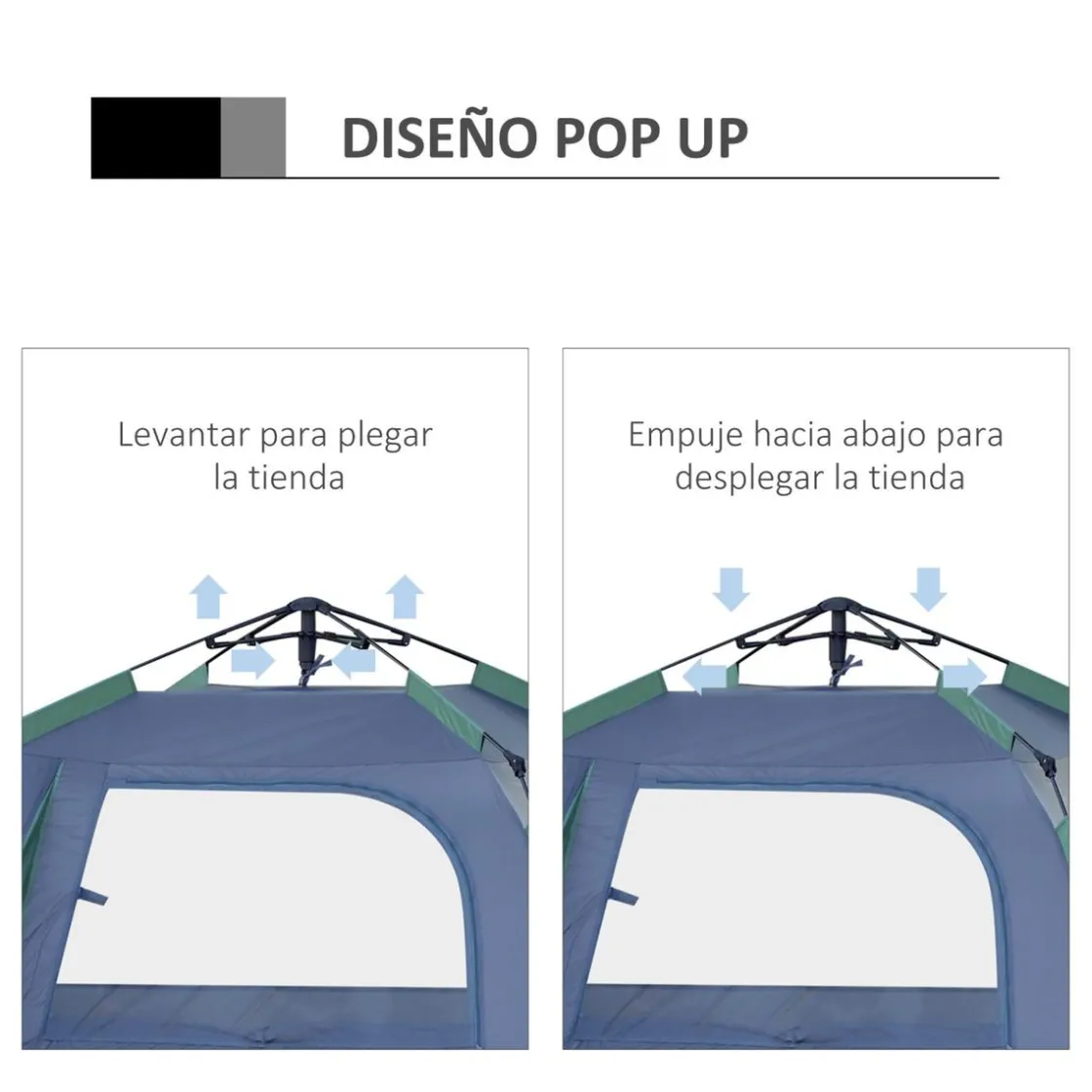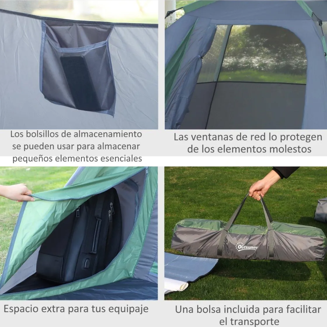 - Tienda de acampada incluye una práctica bolsa de transporte.