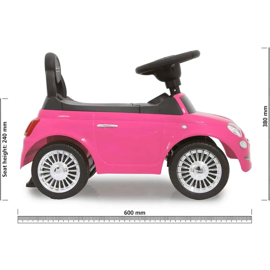 Correpasillos Fiat 500 Rosa. Este coche Fiat 500 correpasillos es un fantástico juguete que proporcionará a tus peques una experiencia de gran turismo inolvidable gracias a su icónico diseño.