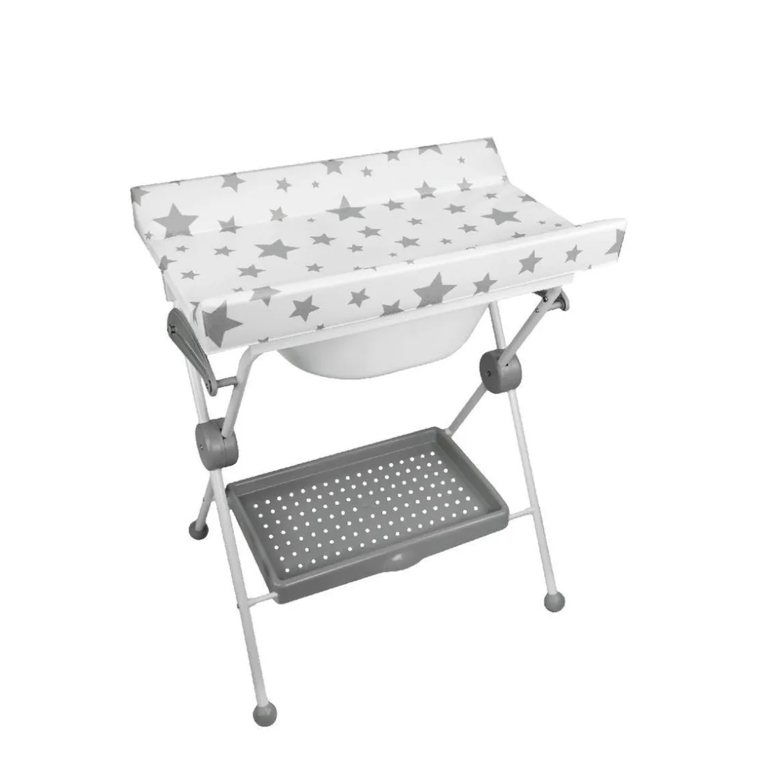 Incluye un cambiador antivuelco muy práctico y una bandeja portaobjetos para tener a mano todo lo necesario.