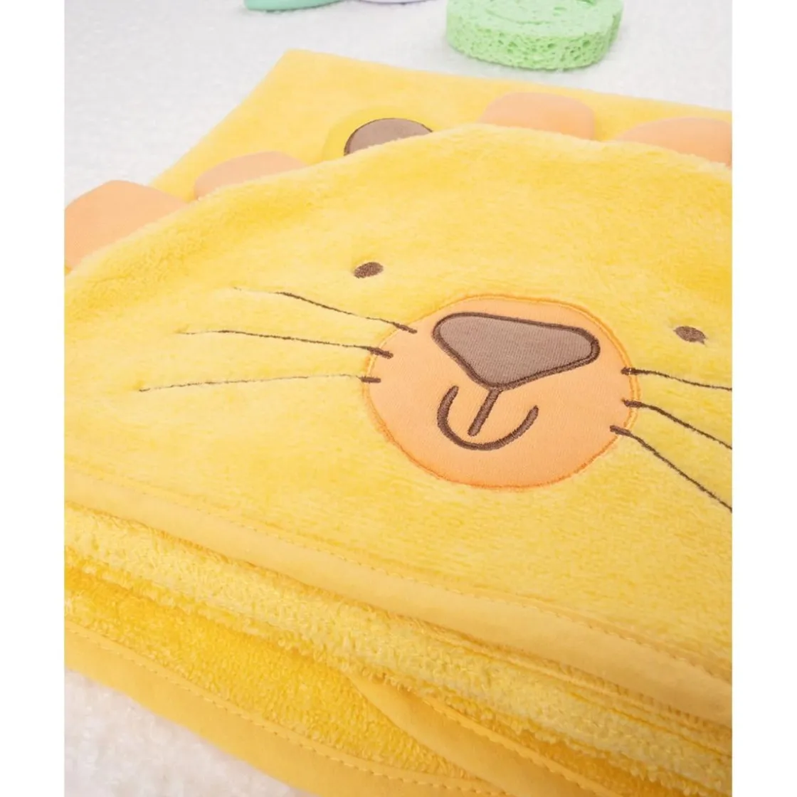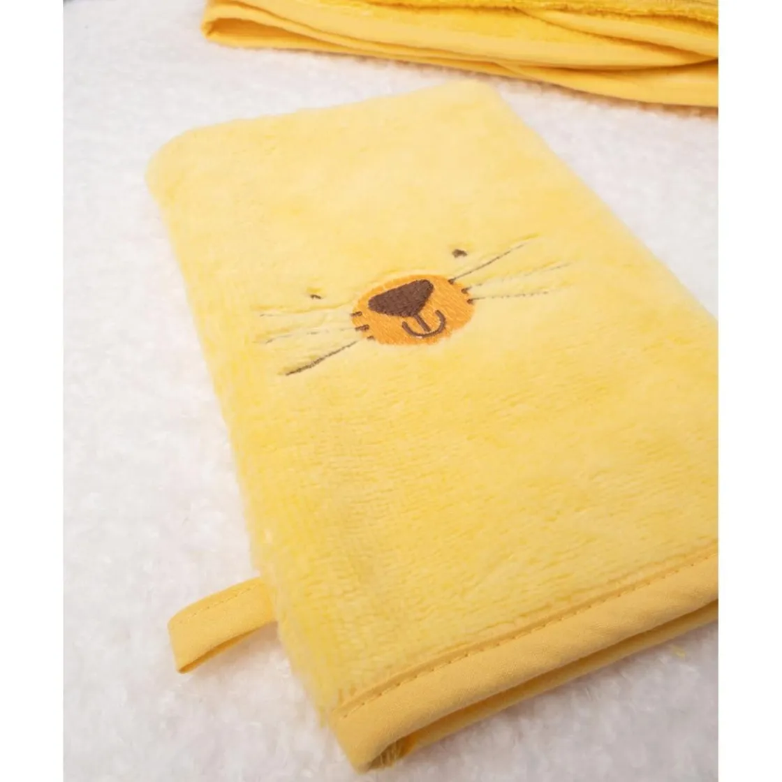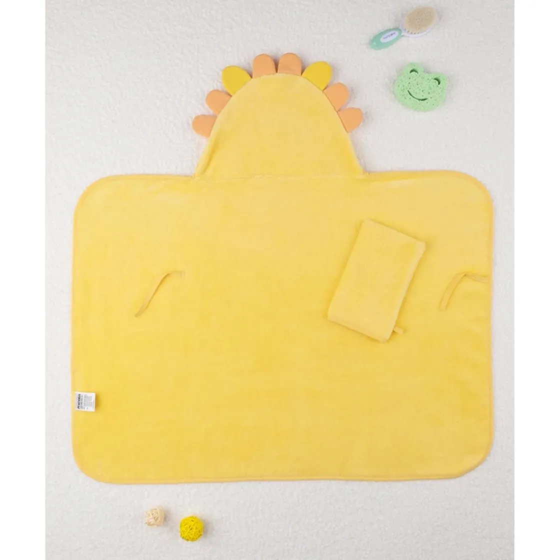 Este simpático albornoz para niño es ideal para mantener a tu pequeño cómodo y abrigado. Con un diseño divertido en amarillo ocra, destaca su capucha con el estilizado rostro de un león en tonos marrones coordinados. El albornoz es suave, envolvente y práctico, ya que se puede cerrar fácilmente para mantener a tu bebé aún más abrigado. Es perfecto para el baño o para mantener a tu niño acogido después de un día de juegos.