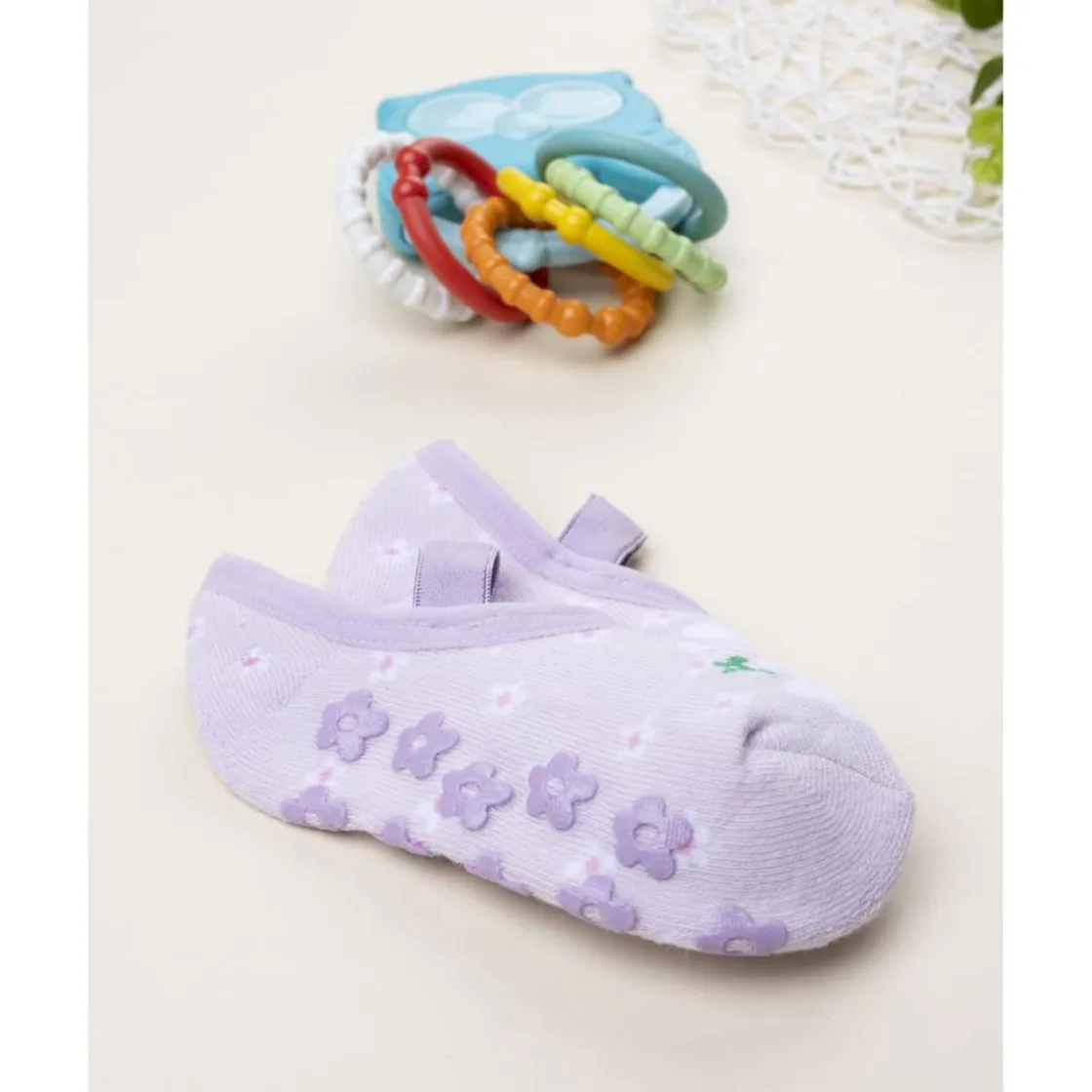 Características: Bailarinas de tela, base lila, estampado coordinado, sujeción elástica, gommini en forma de estrella, confort total.