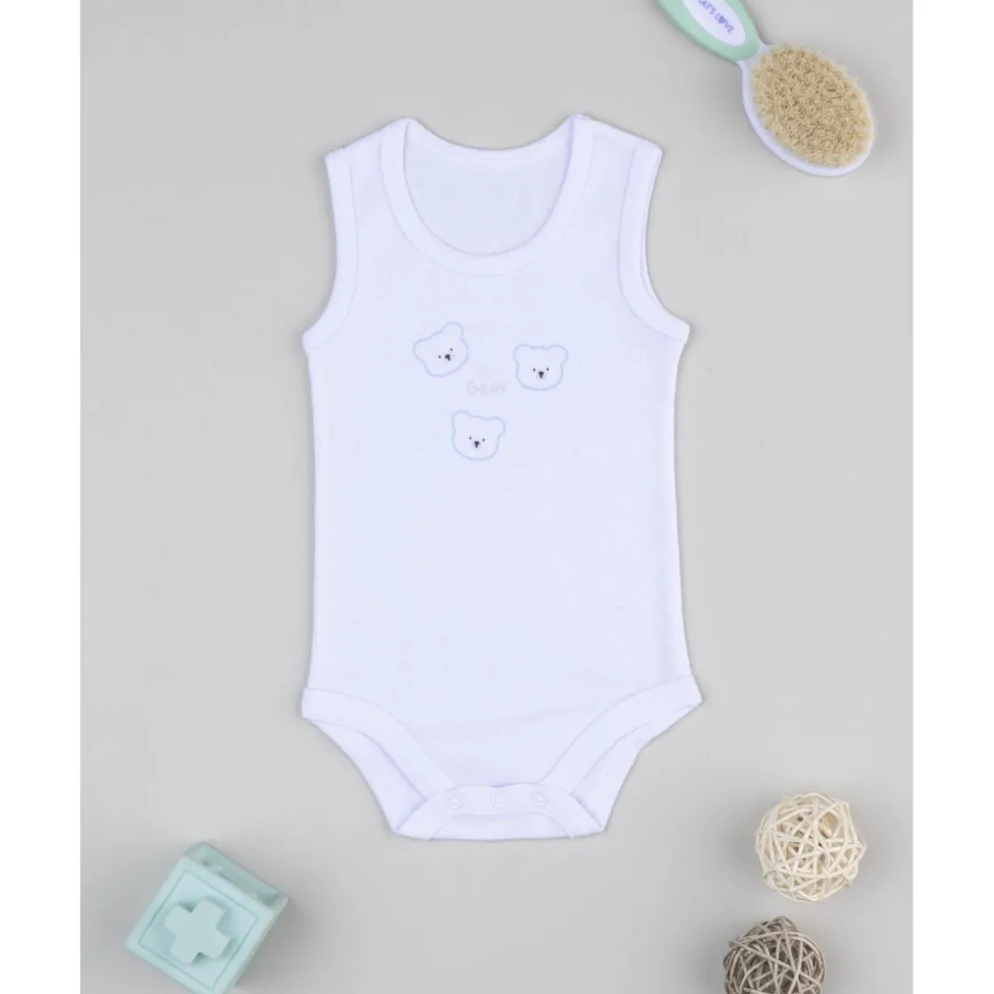 Body básico de canalé para niño, en blanco con pequeña estampación coordinada. Con cierre automático en la entrepierna que facilita el cambio. Algodón Oeko-Tex, testado para evitar sustancias nocivas. Accesorios no incluidos. La caja contiene solo la prenda.