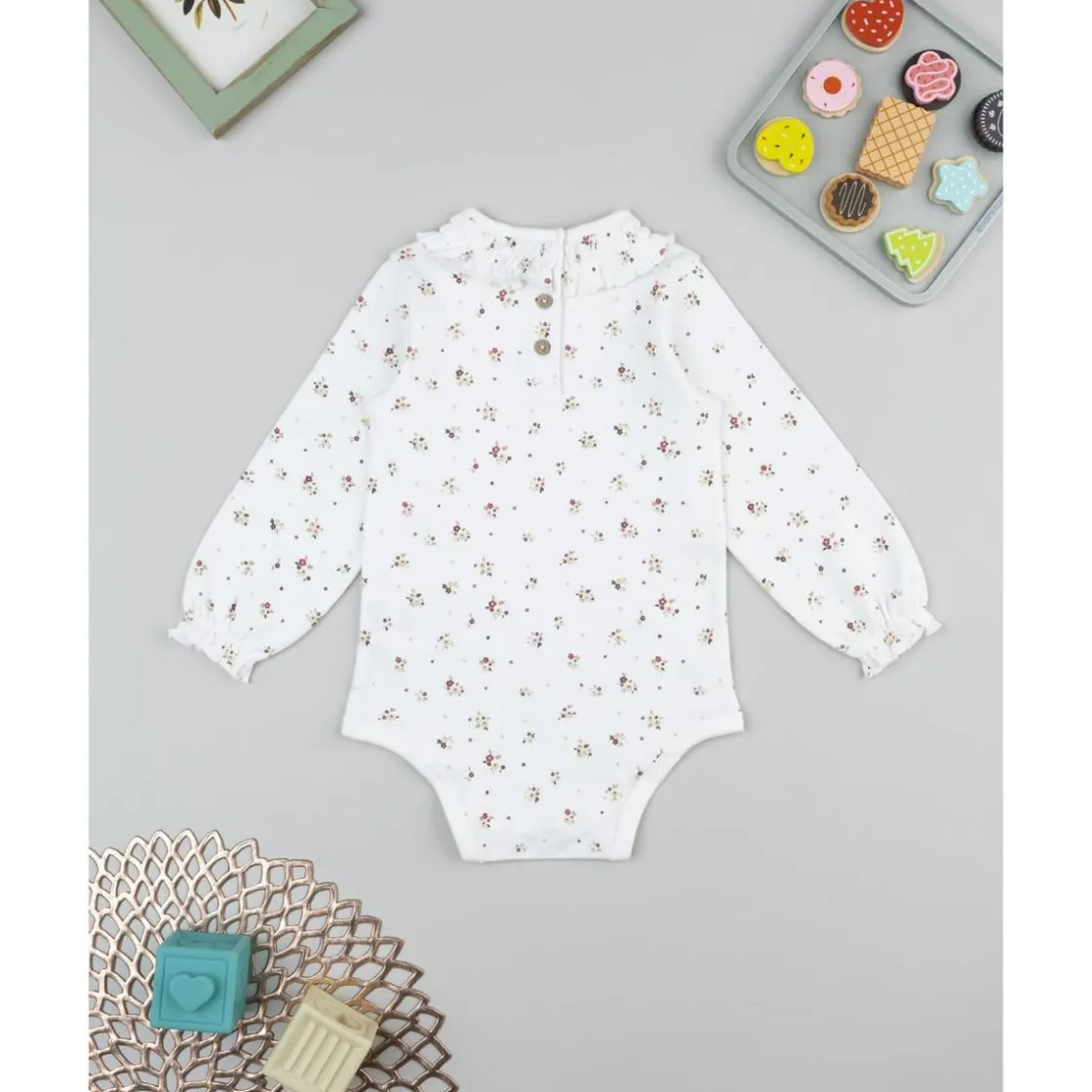 Perfecto para llevar solo o bajo otras prendas, este body destaca por su acabado fino y su estampado alegre. Ofrece confort y un toque de dulzura ideal para cualquier ocasión.