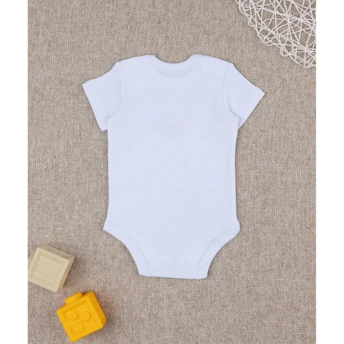 Body básico costina unisex. La prenda se desarrolla sobre una base blanca con pequeña estampado de animalitos coordinada. El ajuste es holgado y práctico gracias a los botones automáticos en la entrepierna. La prenda es de algodón oeko – tex, probado para sustancias nocivas, garantiza alta seguridad. Accesorios no a la venta. El paquete contiene solo la prenda de vestir.