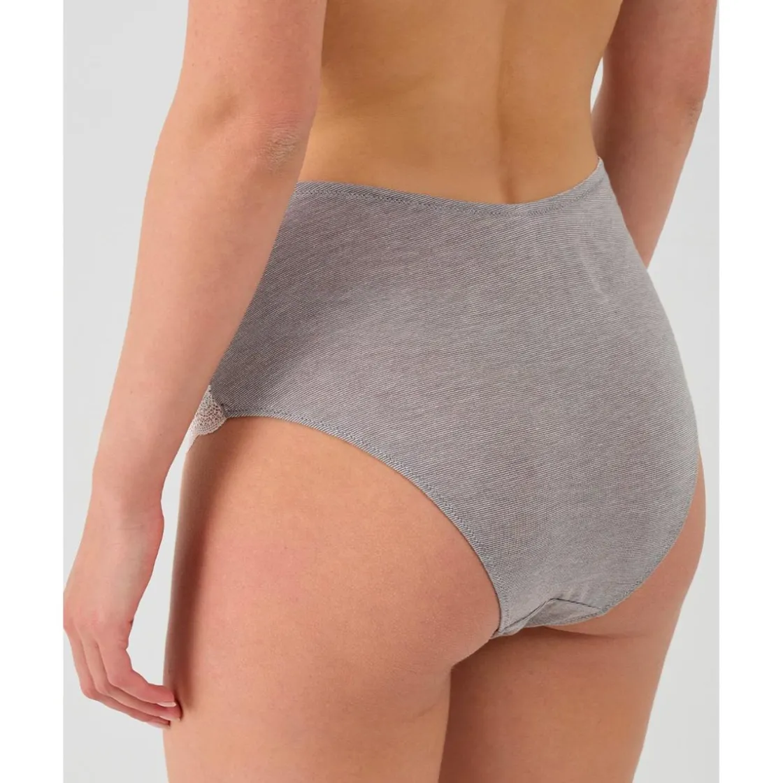 Braga de cintura alta con un diseño que crea un delicado efecto acanalado. El bordado de encaje lateral y el pequeño lazo decorativo añaden un toque romántico y refinado. Combínalo con el sujetador a juego.