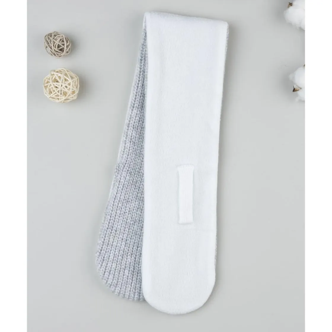 Bufanda bicolor casual para niño en gris y blanco. Su tejido suave y envolvente ofrece comodidad durante el uso, protegiendo del frío de manera práctica y estilosa.