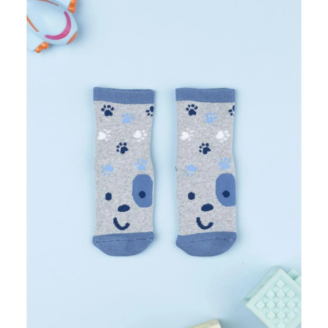 Calcetines antideslizantes de niño gris y azul con perrito
