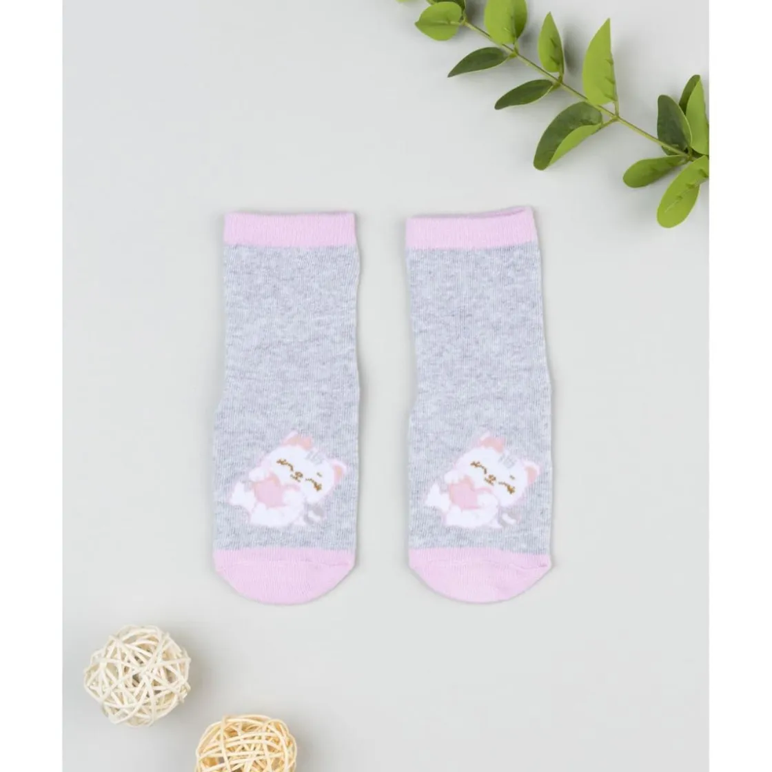 Los calcetines antideslizantes de niña en gris claro con detalles rosa y estampado de gatito son la combinación perfecta de comodidad y seguridad. Ideales para llevar en casa o en actividades de juego.